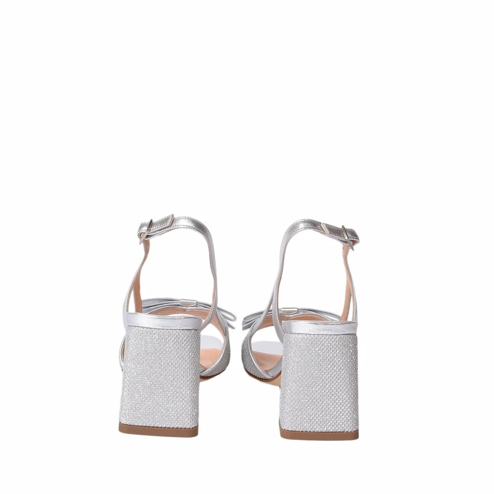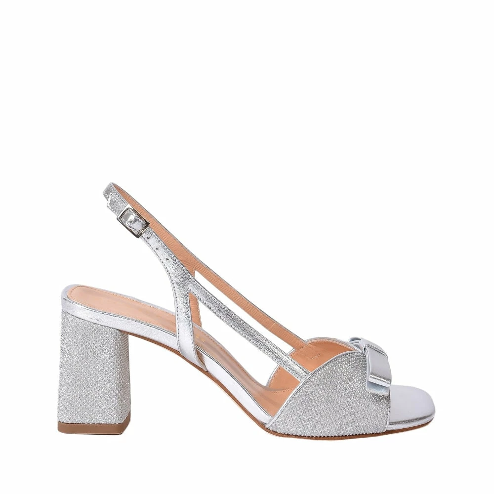 | Brand Model Product number Category Color Material Lining Heel Heigh Outsole | CHANTAL Luxor Bow 1103/Silver Heels Silver Glitter Leather Leather 7.5 cm Leather |