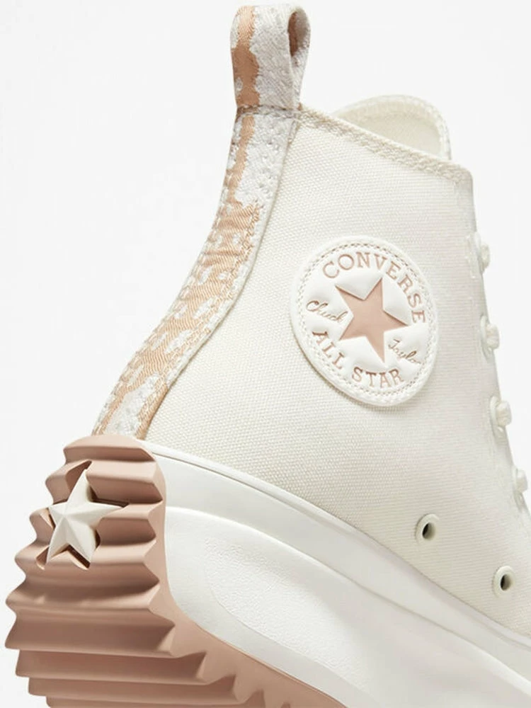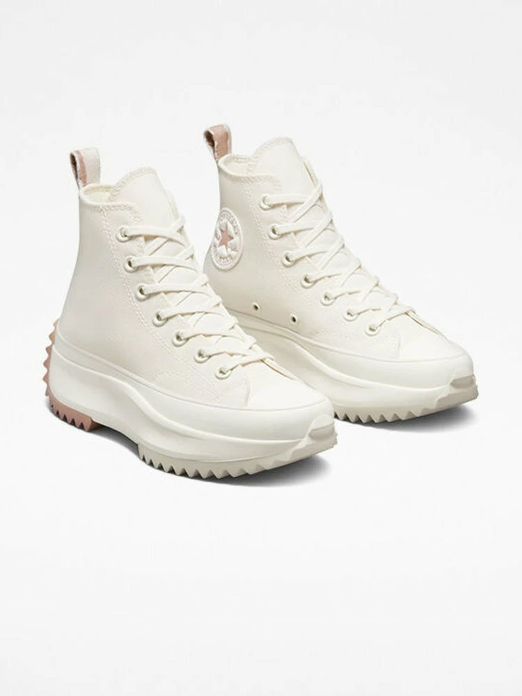 Chic and comfortable are the two synonyms for ‘Run Star Hike’ Hi-sneakers from ‘Converse.’ These ‘Egret-Hemp’ color sneakers feature a round toe, a high-top canvas upper with lace fastening, an elevated tongue, and a chunky platform.
