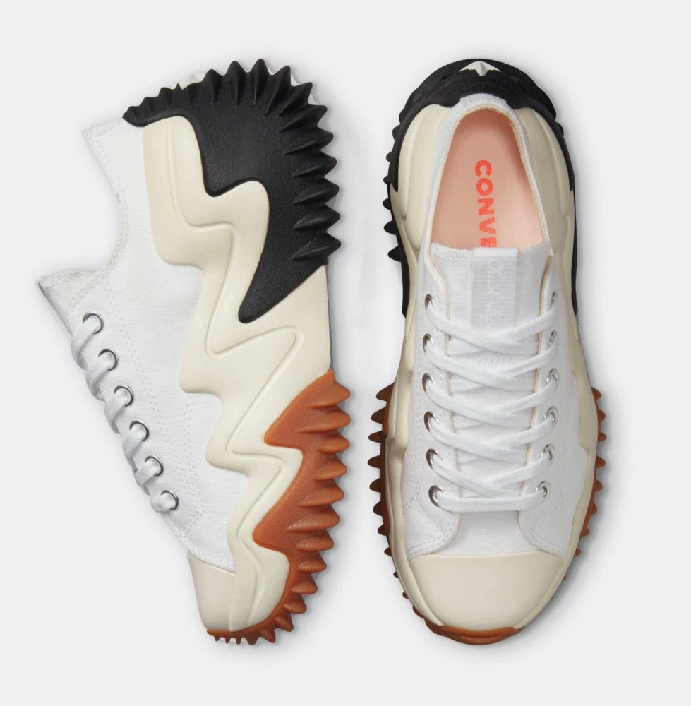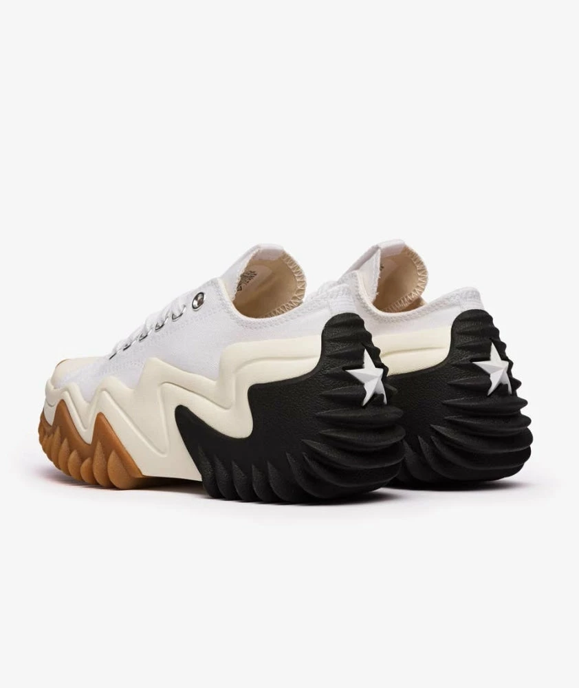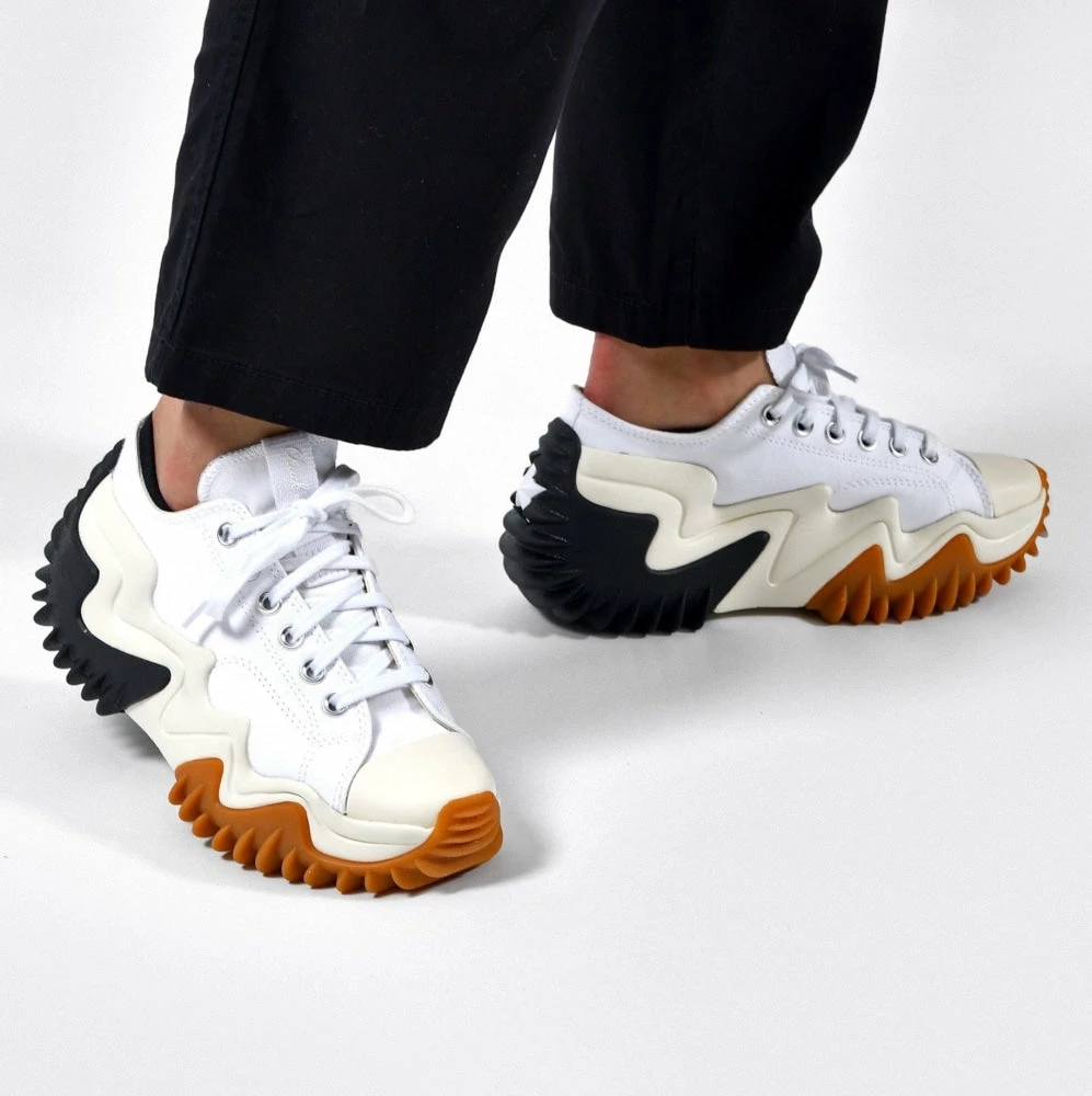 | Brand Model Product number Category Colour Material Outsole Closure | CONVERSE Run Star Motion Ox 172896C Sneakers White / Black / Egret 100% Organic Cotton Canvas Debossed Rubber Sole. Laces |