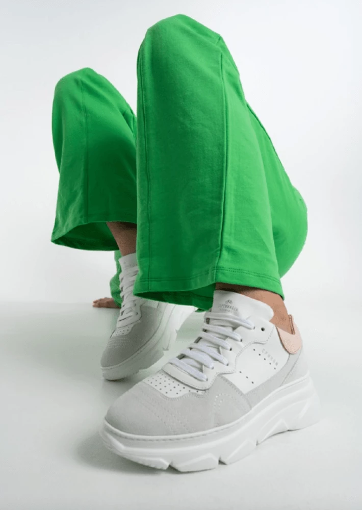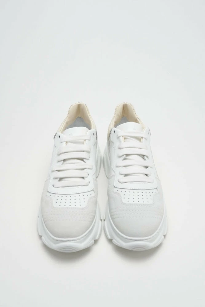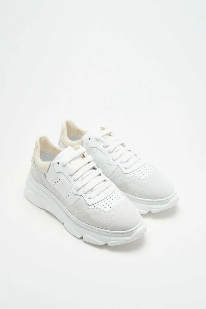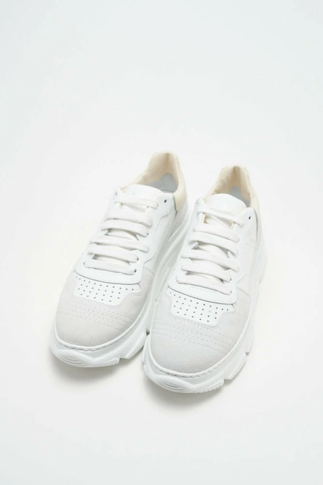 Who doesn’t love a classic style sneakers in a chunky design? ‘Material Mix’ chunky sneakers from ‘Copenhagen Studios’ are the coolest yet classic pair of sneakers to give you an edgy style. These ‘White-Butter’ colored sneakers feature a round toe, a leather upper, lace fastening, and a chunky platform.