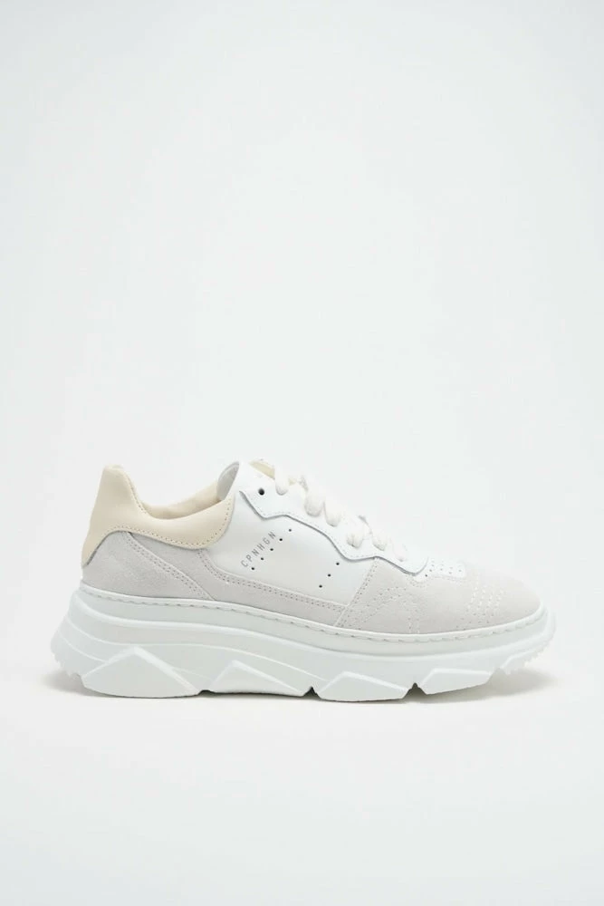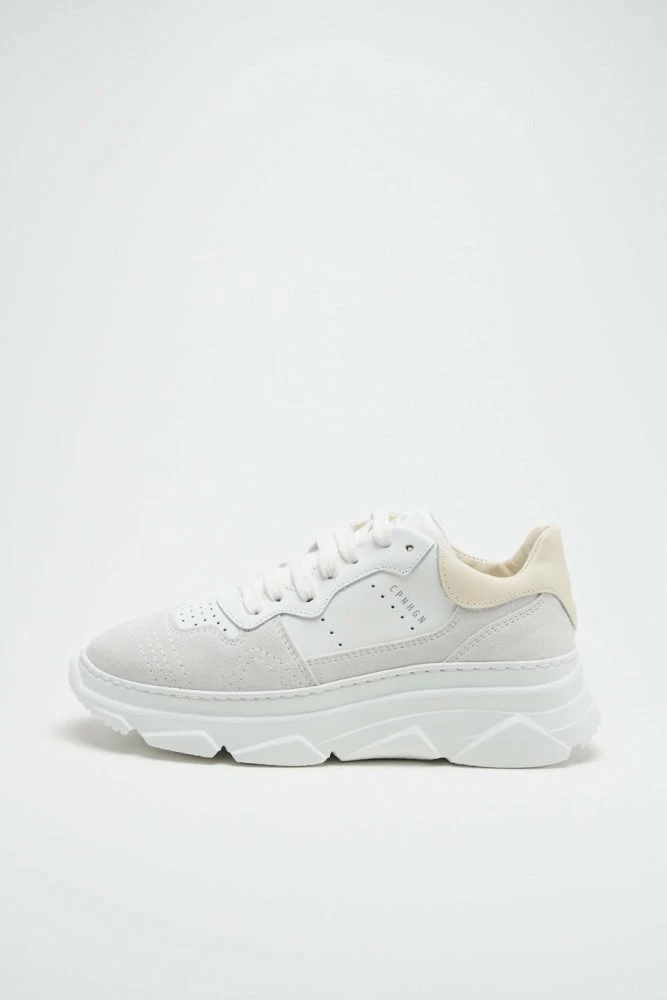| Brand Model Product number Category Color Material Lining Sole Closure | COPENHAGEN STUDIOS CPH64 Material Mix CPH64 Sneakers White / Butter 100% Leather & Textile Leather / Textile / Suede Leather Rubber Laces |