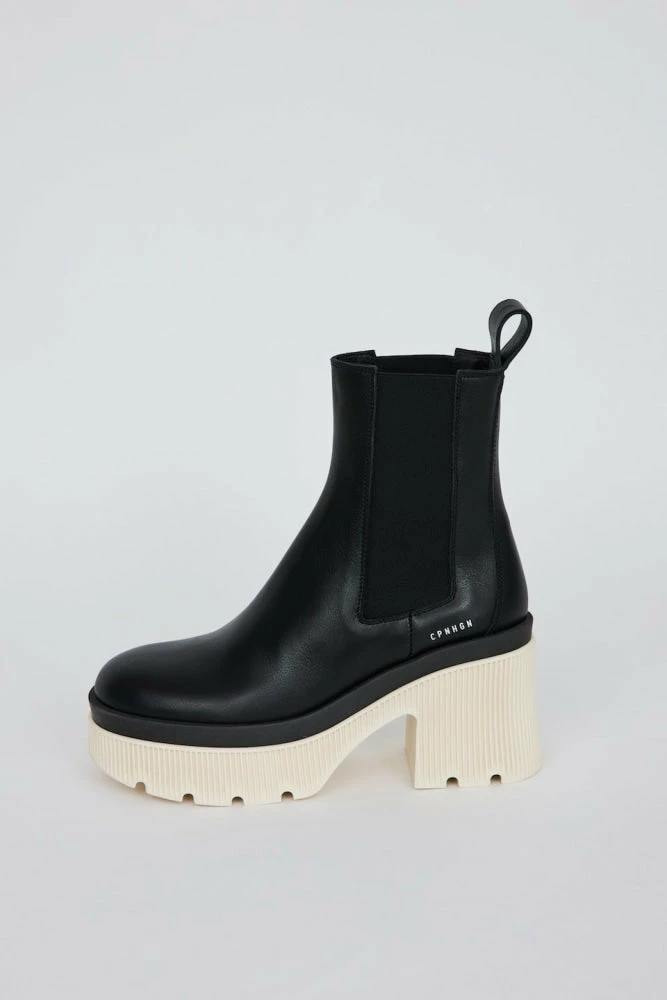 | Brand Model Product number Category Colour Material Lining Outsole Made in | COPENHAGEN STUDIOS Vitello Nature CPH597BUTTER Ankle Boots Black / Butter 100% Calf Leather 100% Leather 100% Ribber Italy |