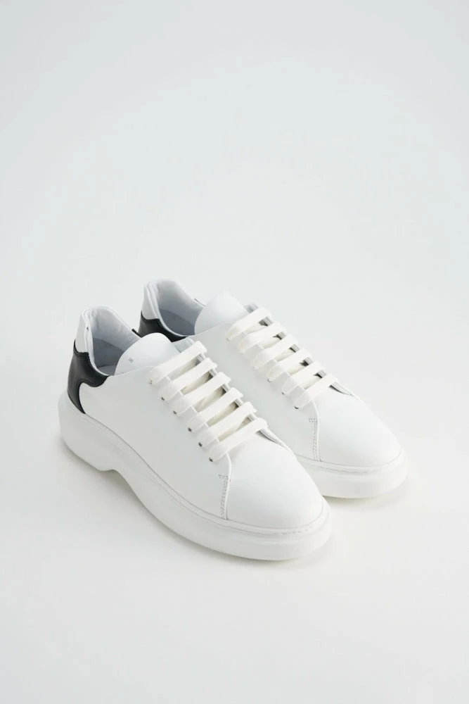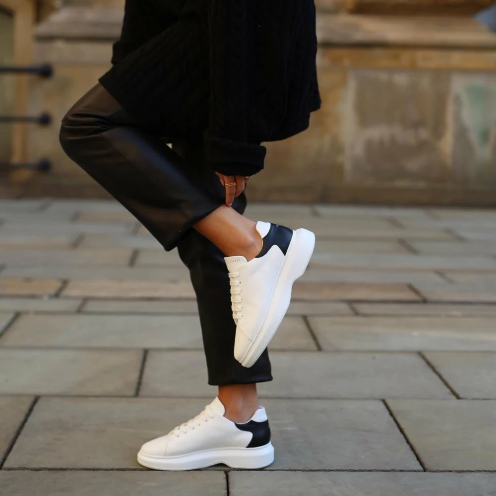 Look stylish and stay fashionable with ‘Vitello’ chunky sneakers from ‘Copenhagen Studios’ in a double-color design. These ‘White-Black’ sneakers are made with 100% leather and textile material and feature a round toe, leather upper, 12-eyelet lace fastening, and a chunky platform.
