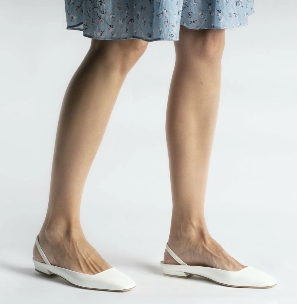 A slender point-toe silhouette imbues Fabio Rusconi’s white slingback flats with a classic sense of elegance. They’re crafted in Italy from smooth leather with a strap, deep square-cut neckline, then finished with a small stacked heel.Â
