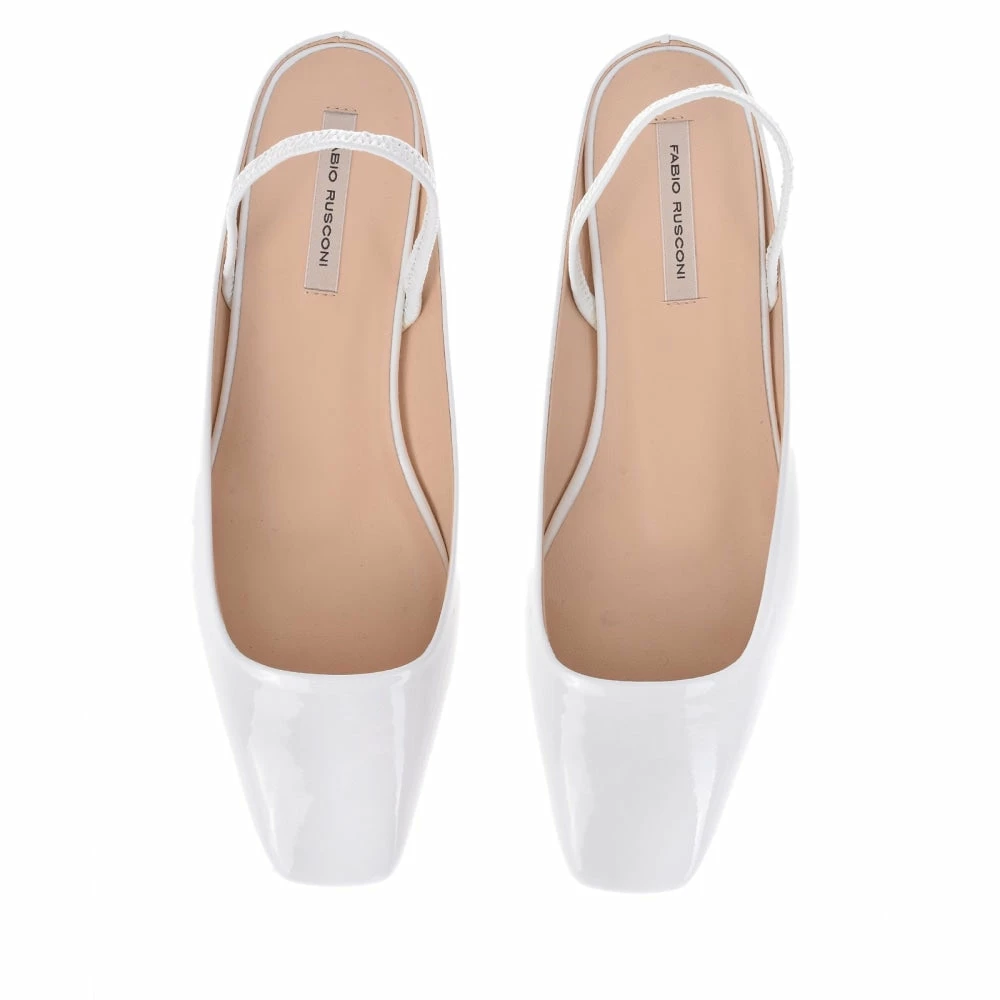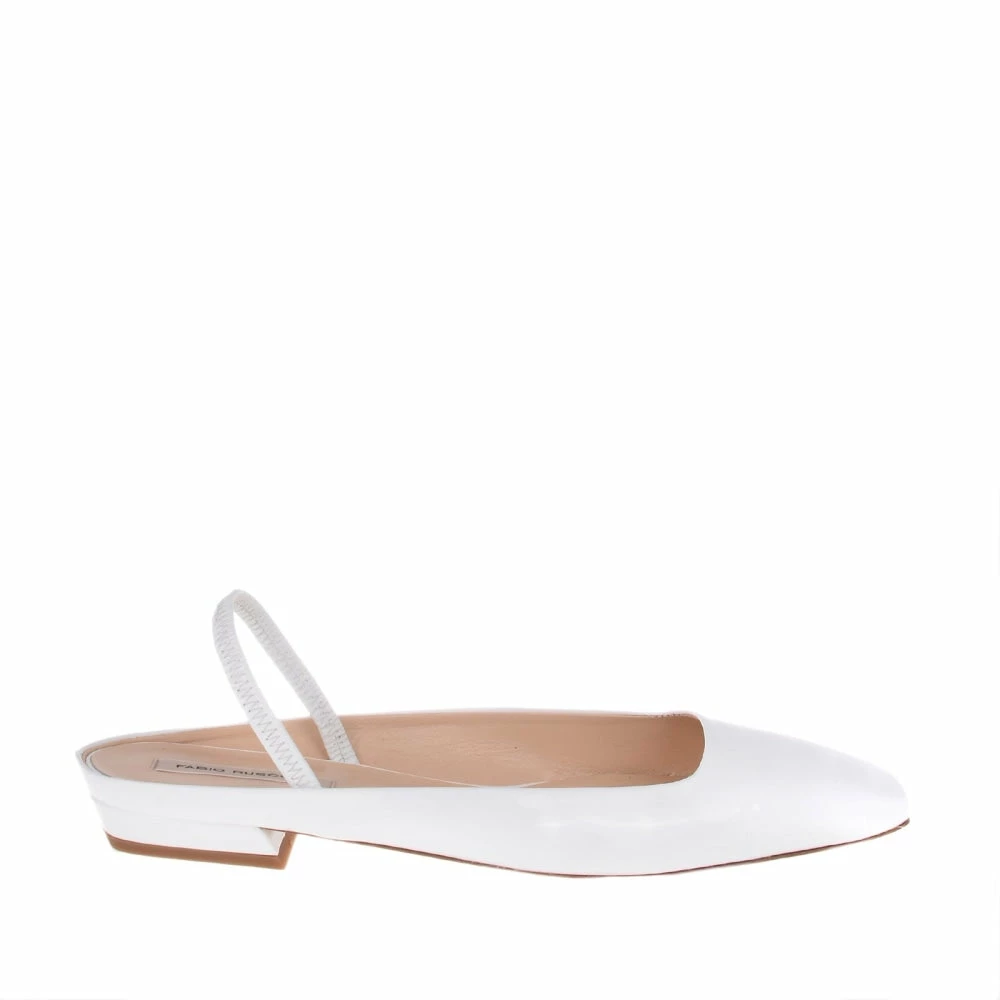 | Brand Model Product number Category Color Material Lining Outsole Heel Height | FABIO RUSCONI Bit BIT-VERNICE-WHITE Flats White 100% Patent Calf Leather 100% Leather 100% Cow Leather 1.5 cm |
