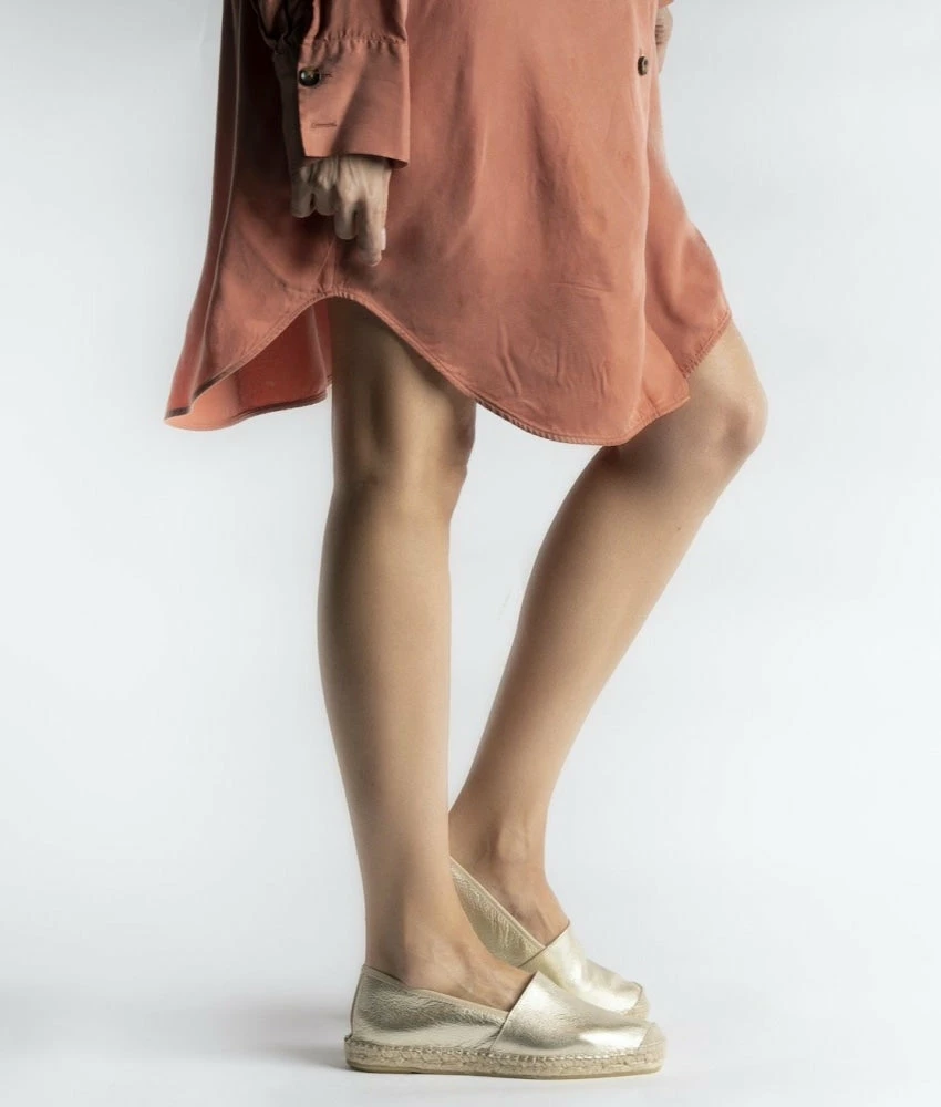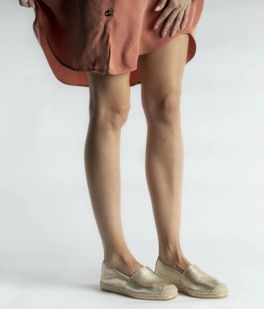 Clear the clouds of boring and monotonous style with FABIO RUSCONI’s ‘DOLORES’ espadrilles in gold shade. A mix of fashion, comfort, elegance, and sophistication, these espadrille flats should be your ‘go-to’ option when you need a refreshing burst of luxurious style.