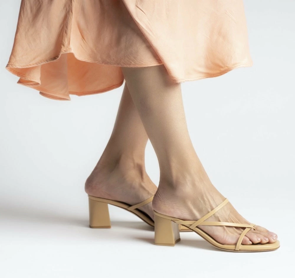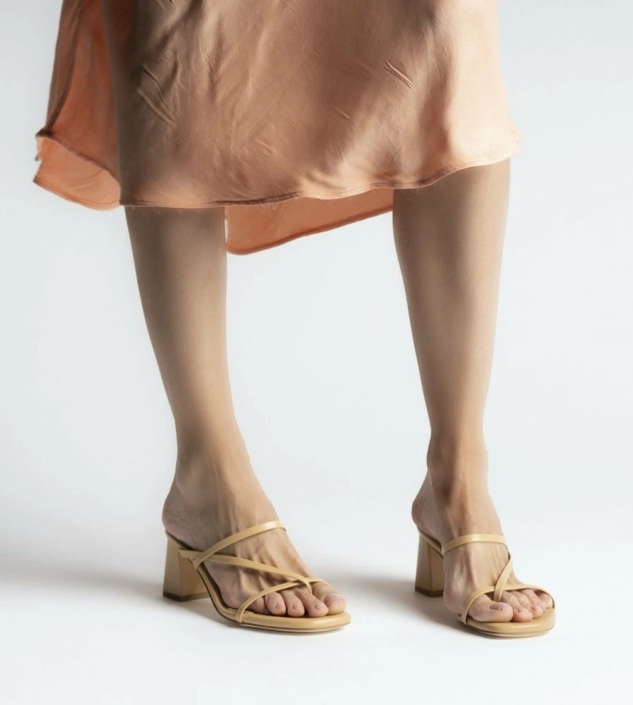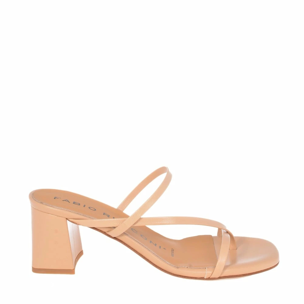 These nude Fabio Rusconi leather sandals have slim foot straps for a barely there appearance. A slip-on design, this style has a square toe and sculpted block heel.Â