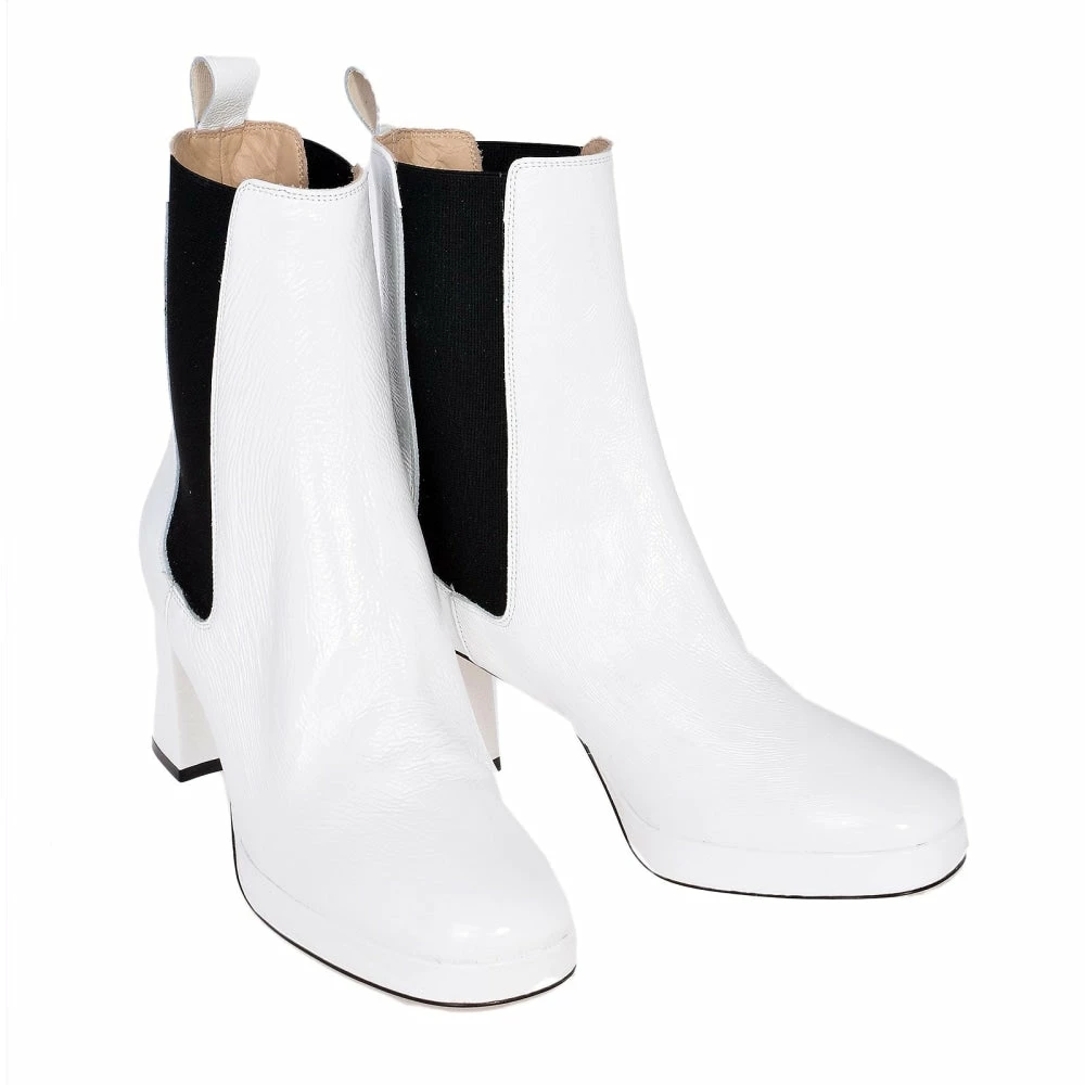 | Brand Model Product number Category Color Material Lining Outsole Heel Heigh | FABIO RUSCONI Nebo White I-1960-WHITE Boots White 100% Naplak Leather 100% Leather 100% Leather  cm |
