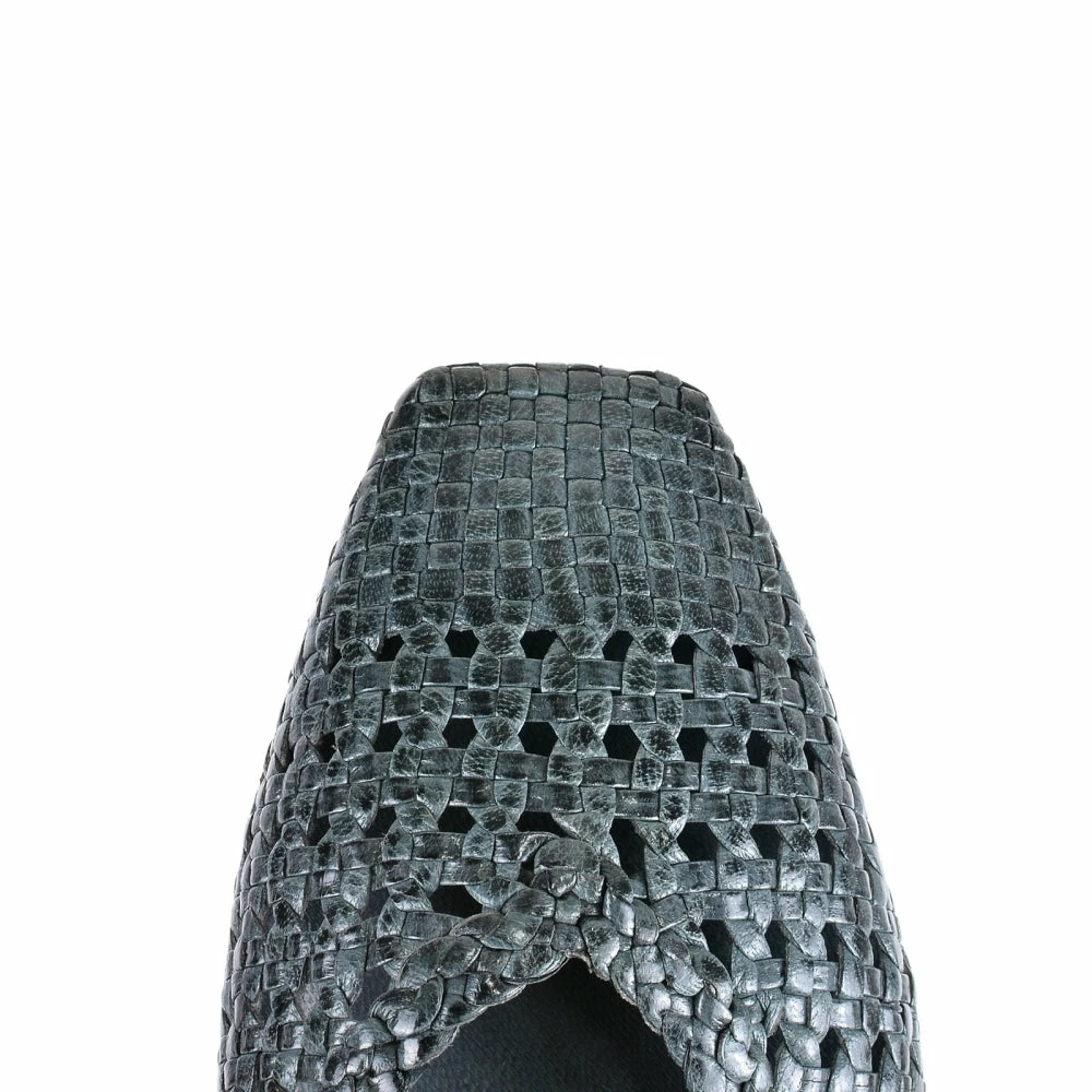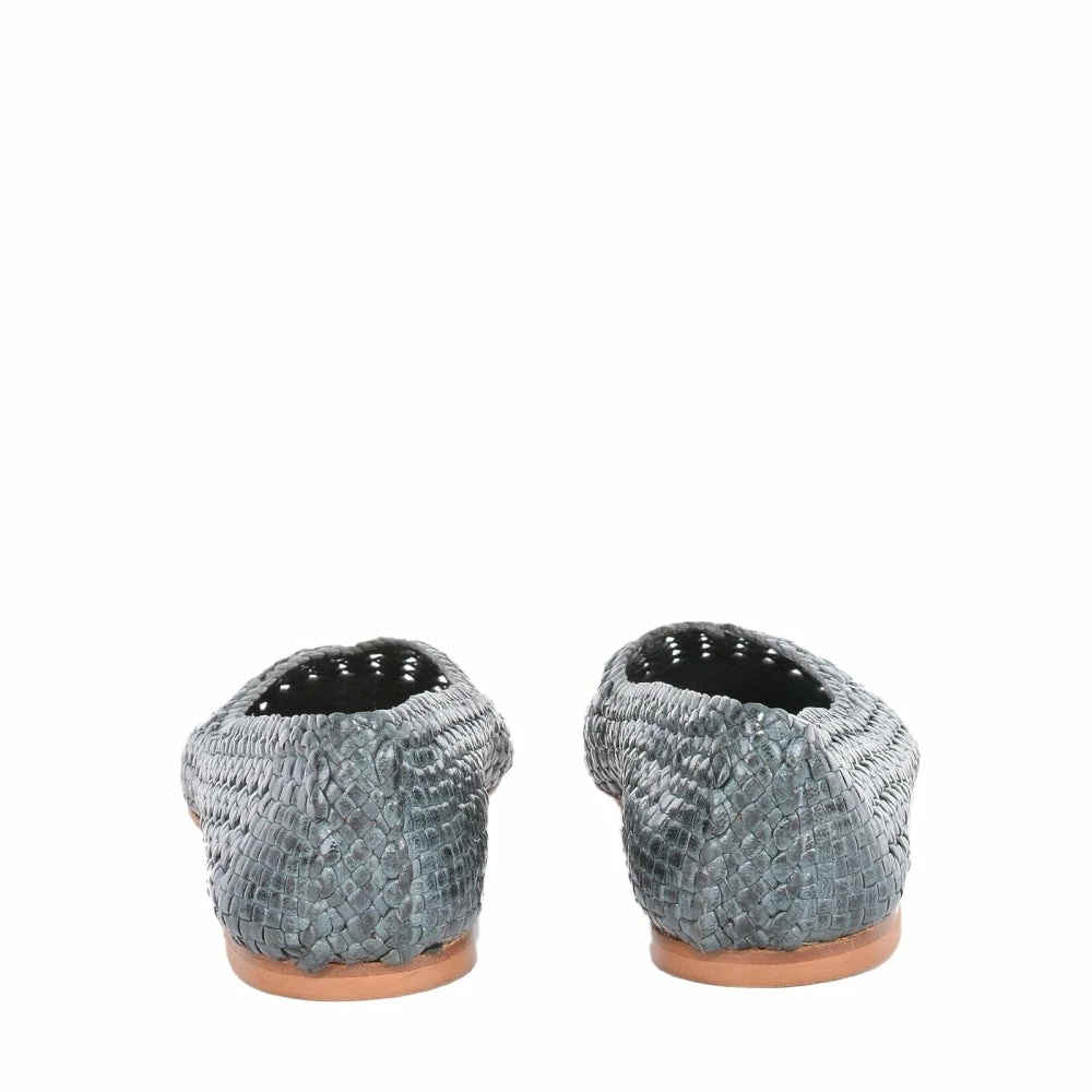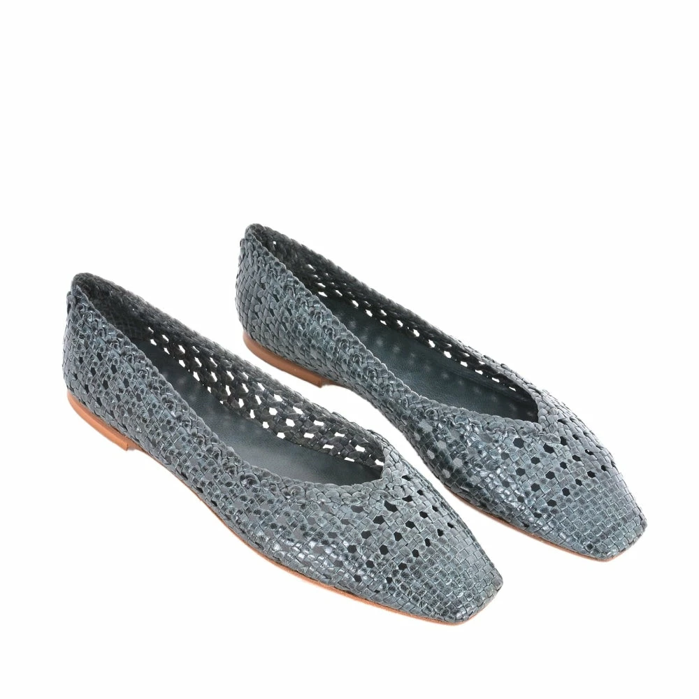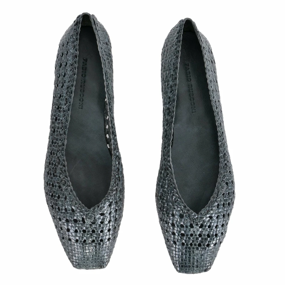 These navy Fabio Rusconi woven leather flats feature an elongated toe with a square tip, a high opening and a flat sole with a low block heel.