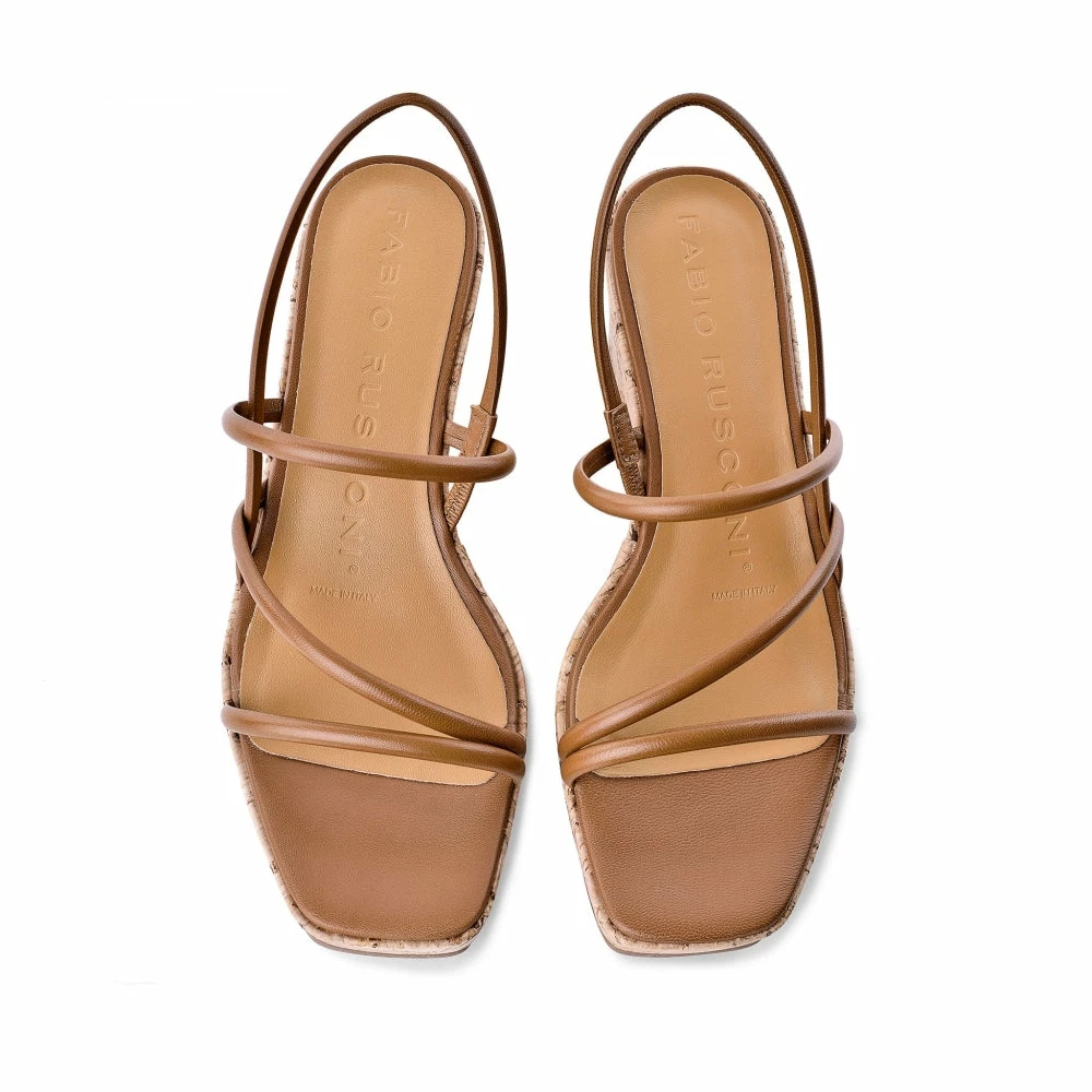 | Brand Model Product number Category Color Material Lining Outsole Heel Height | FABIO RUSCONI Effe EFFE1183-COGNAC Sandals Cognac 100%  Soft Cow Leather 100% Leather 100% rubber 3 cm / 7 cm |