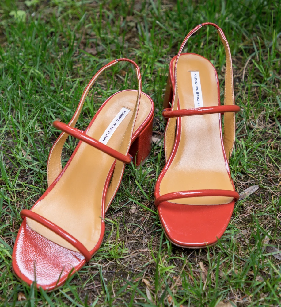 | Brand Model Product number Category Color Material Lining Outsole Heel Height | FABIO RUSCONI Iside ISIDE1178-BRICK Sandals Brick Naplak / Patent Leather 100% Goat Leather 100% Leather  cm |