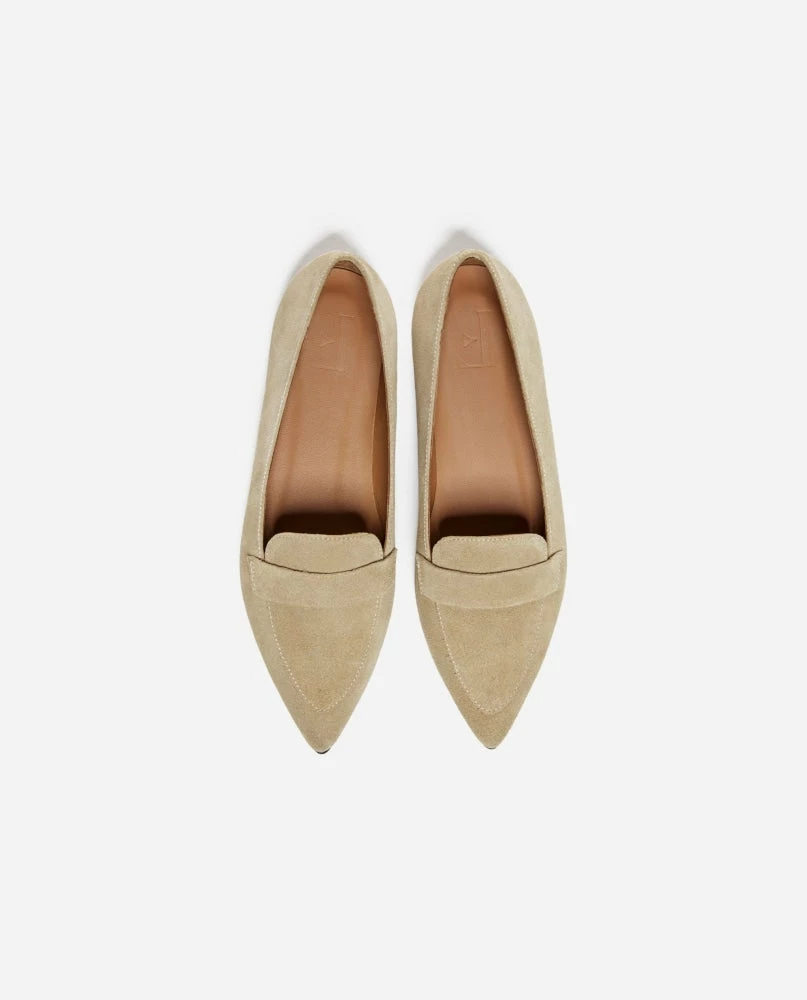 Flattered Alexandra Suede Sand Fats are the perfect wear for the woman that enjoys wearing classy, elegant, evergreen, and yet unpretentious shoes. If you’re that woman, you should consider having a pair of Flattered shoes in your wardrobe. And Alexandra Suede Sand Flats is that pair.