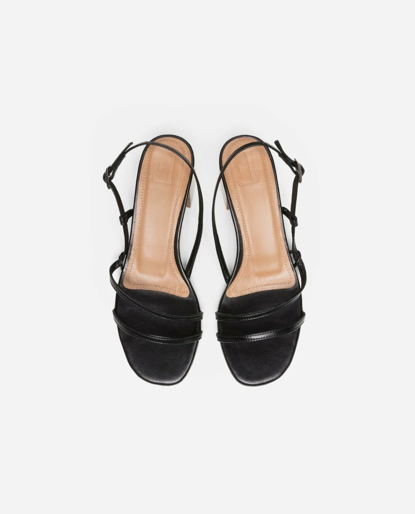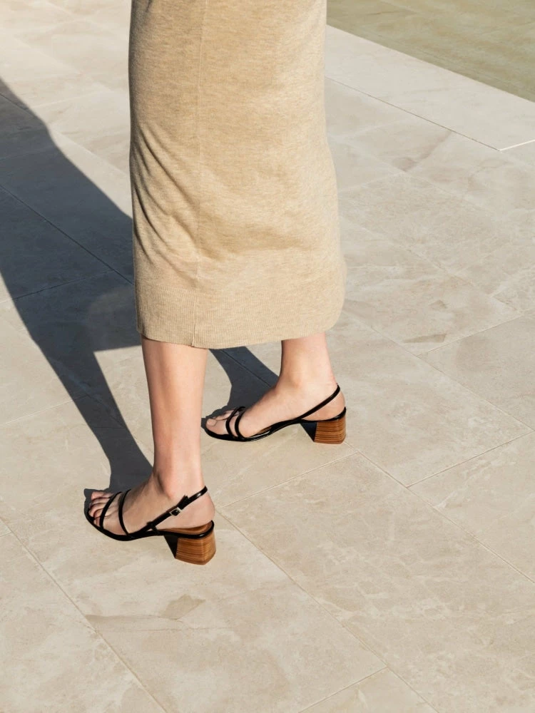 Flattered collections focus on fine materials and timeless silhouettes. Crafted from smooth leather with barely-there straps, these sandals have a slender block heel that’s the ideal height for wearing all day long. Keep the square-toe shape in focus with cropped hemlines.