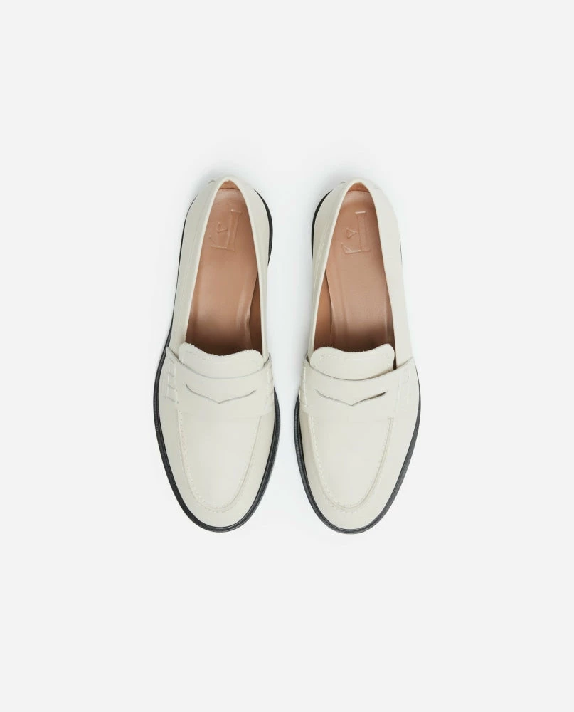 | Brand Model Product number Category Colour Handmade in Outer Material Lining Outsole Heel Height Shoebox Dustbag | Flattered Sara 22010115601-015 Loafers Creme Elda, Spain Cow Leather (Bos Taurus) Chrome-free Goat leather (Capra Hircus) Thunit (rubber) 20 mm Recycled paper, no glue and colorants Certified organic cotton, fair trade wood |