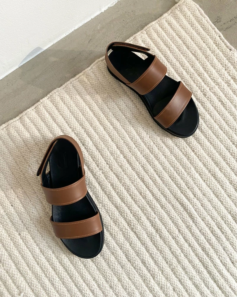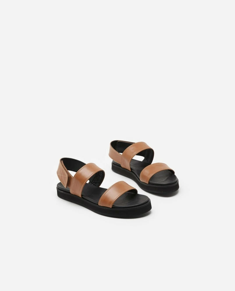 | Brand Model Product number Category Colour Handmade in Outer Material Lining Outsole Shoebox Dustbag | Flattered Lynn 22010720801-024 Sandals Cognac Elda, Spain Cow (Bos Taurus) Goat Leather (Capra Hircus) Thunit (Rubber) Recycled paper, no glue and colorants Certified organic cotton, fair trade wood |