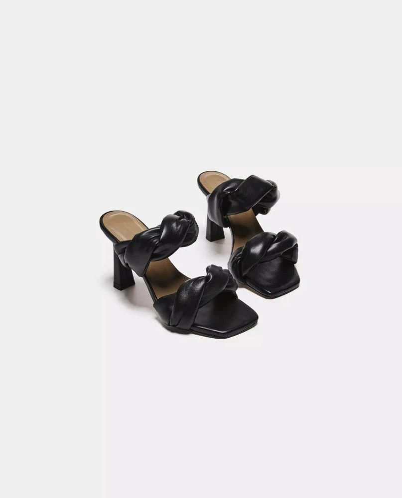 Handmade in soft leather, with a 85mm heel and soft straps that tie up into a breezy knot over the foot. Available in vegan khaki. A pump with a high 85 mm heel and padded twisted straps.