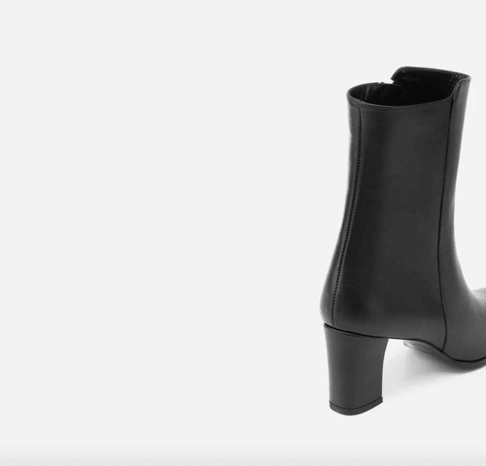 | Brand Model Product number Category Colour Handmade in Outer Material Lining Outsole Heel Height Shoebox Dustbag | Flattered Teddy 19020805801-001 Boots Black Elche, Spain Cow Leather (Bos Taurus) Chrome-free Goat leather (Capra Hircus) Thunit (rubber) 65 mm. Recycled paper, no glue and colorants Certified organic cotton, fair trade wood |