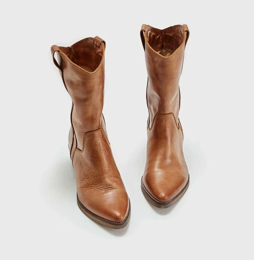 Ivylee Tracy Dark Tan Boots. Crafted from exclusive Escuvado leather this classic cowboy boot will make heads turn. Express your extravagance with these Dark Tan Western-inspired boots, and make it shine this Spring or Summer.