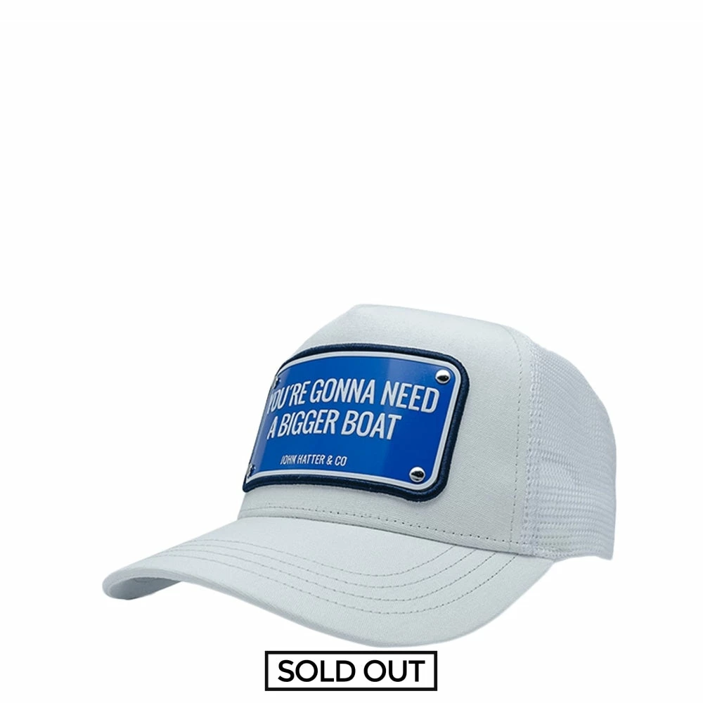 | Brand Model Product number Category Colour Material Climate Sweatband | JOHN HATTER YOU´RE GONNA NEED A BIGGER BOAT JH1013 Hat White Poly Blend Breathable Cotton |