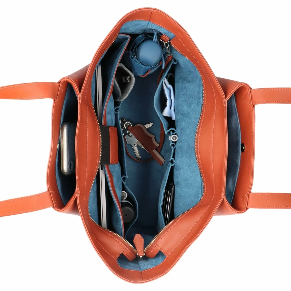 The KAAI Pyramid terracotta bag is an XL shoulder bag that stands for a fusion of contemporary design with Art Deco lines. The bag has a huge capacity for all professional and personal belongings and looks extremely luxury thanks to the use of minimalistic, soft leather and master craftsmanship. Women can feel confident by wearing the Pyramid as the leather is treated with an innovative Italian technology in order to keep the look clean and perfect.