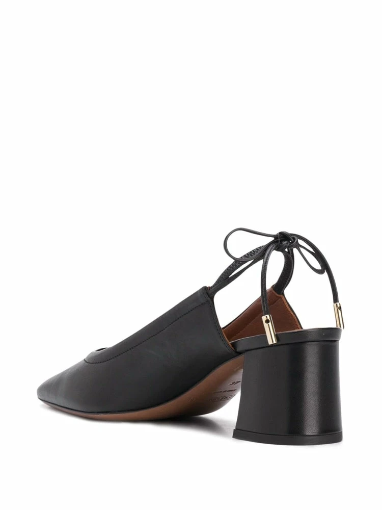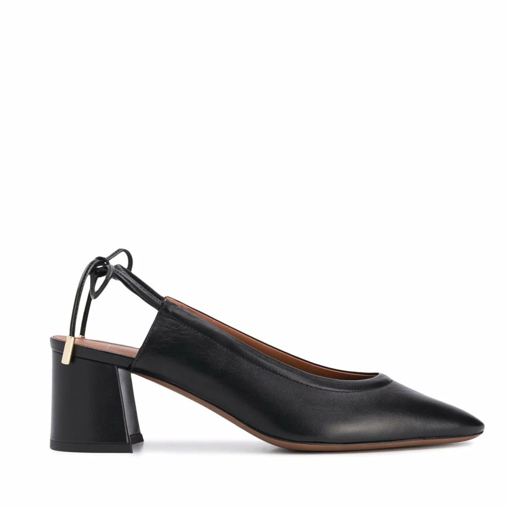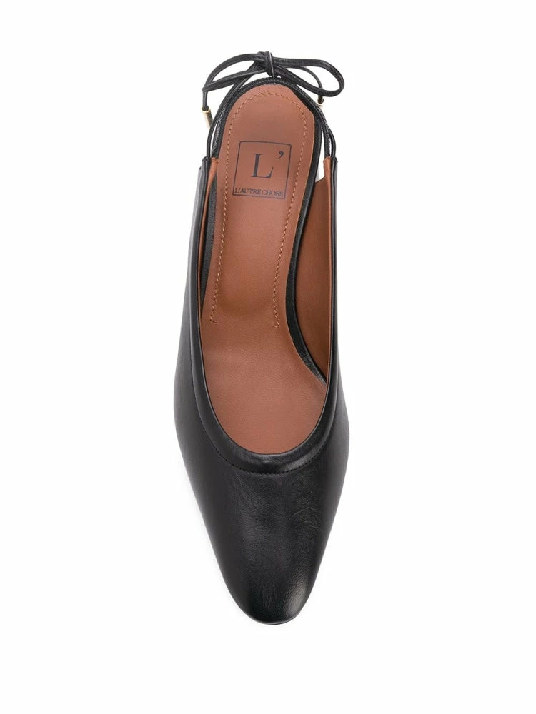 | Brand Model Toe Fastening Lace Product number Category Color Material Lining Outsole Heel Height Made in | L’AUTRE CHOSE Slingback Almond Toe Pumps Slingback fastening Torchon lace tie-up LDL037.60CP26151001 Heels Black 100% Genuine Napa/Calf Leather Leather 100% Leather 100% 6 cm Block Heel Italy |