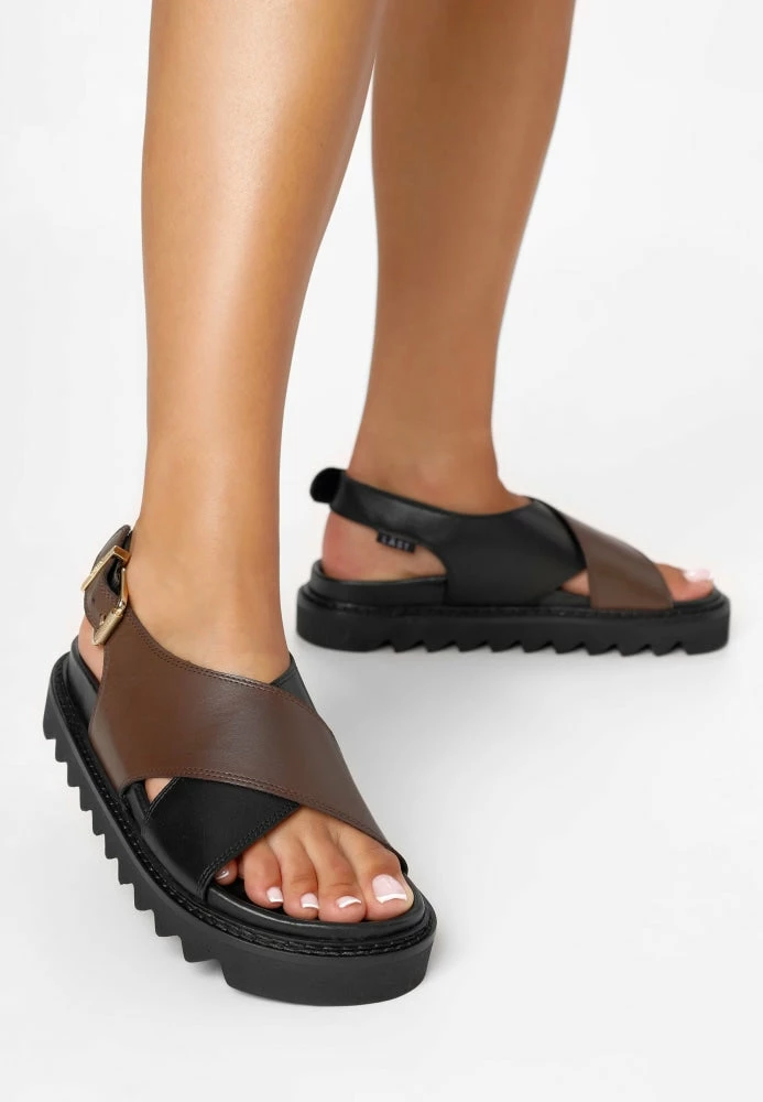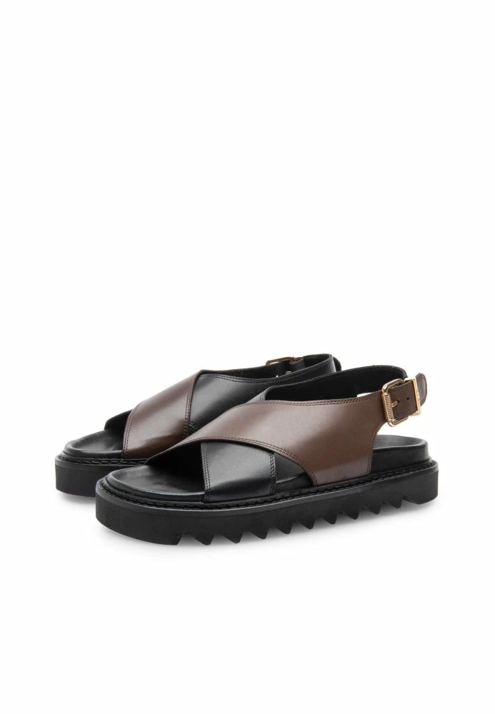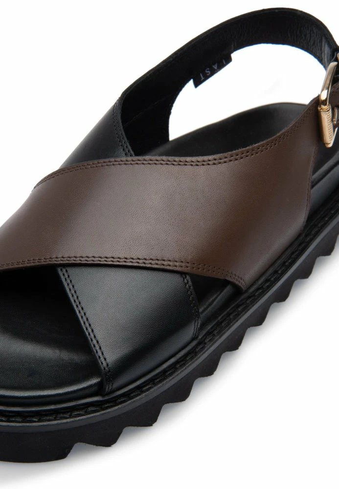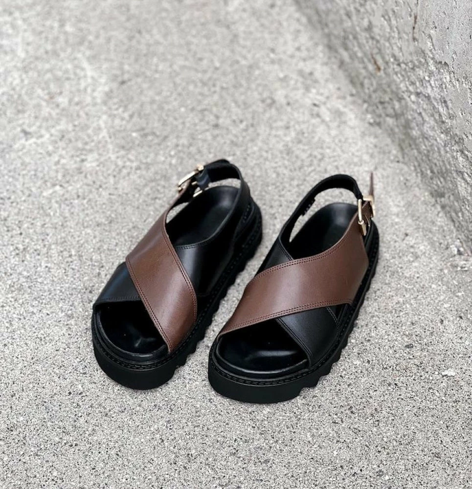 Your style becomes an instant hit with the ‘star of the summer,’ ‘Diana’ chunky sandals from ‘LÄST’ in ‘Black-Brown’ shade. Made with 100% authentic leather and a smooth leather lining, these sandals feature a round toe, a cross-strap upper in dual shades, a soft and comfortable footbed, and a chunky platform.