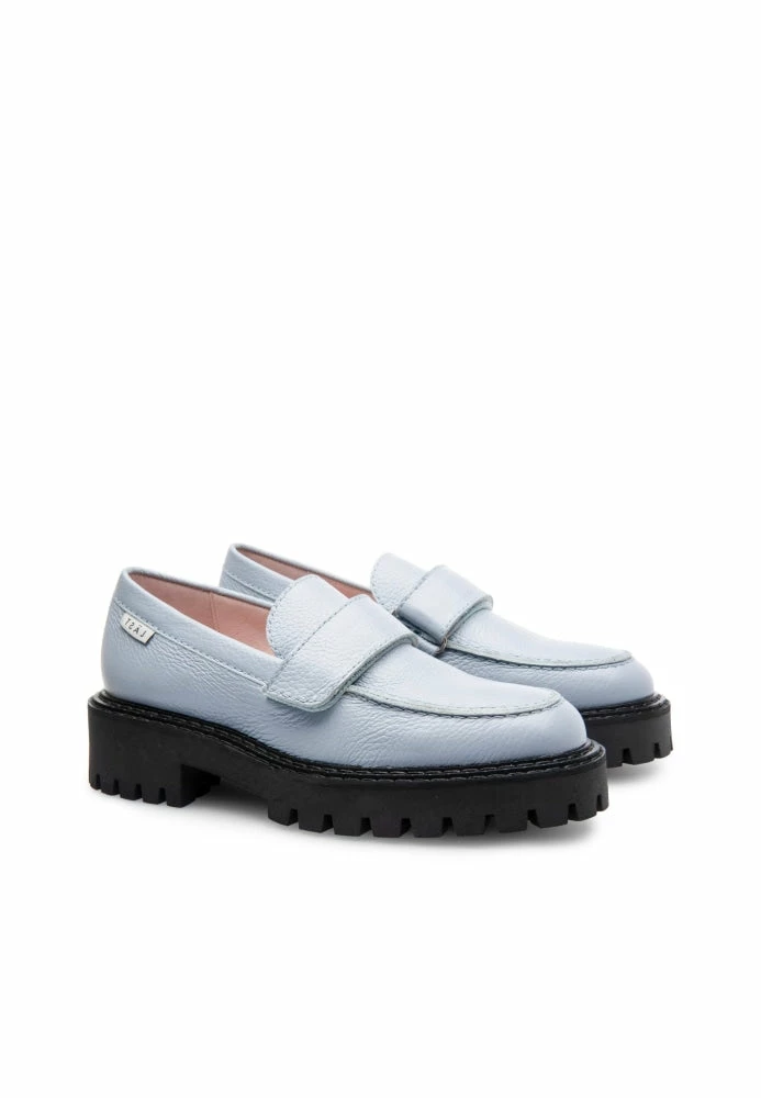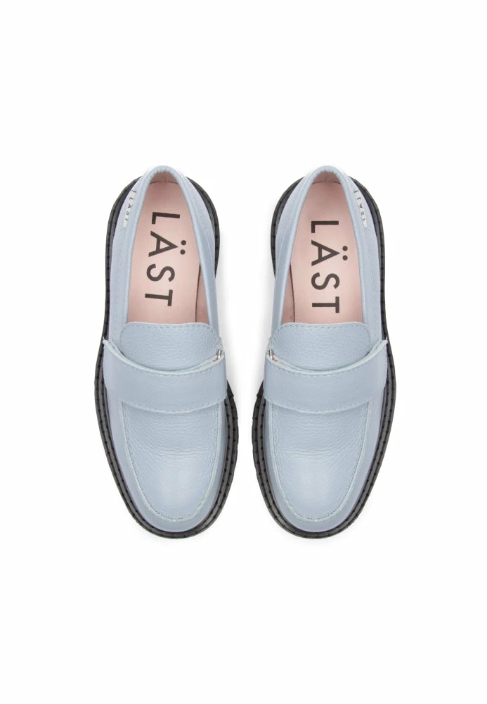 | Brand Model Product number Category Colour Material Lining Removable Sole Closure Made in | LÄST Lady LAST1550 Loafers Dusty Blue 100% Textured Leather 100% Leather Yes Strap Portugal |