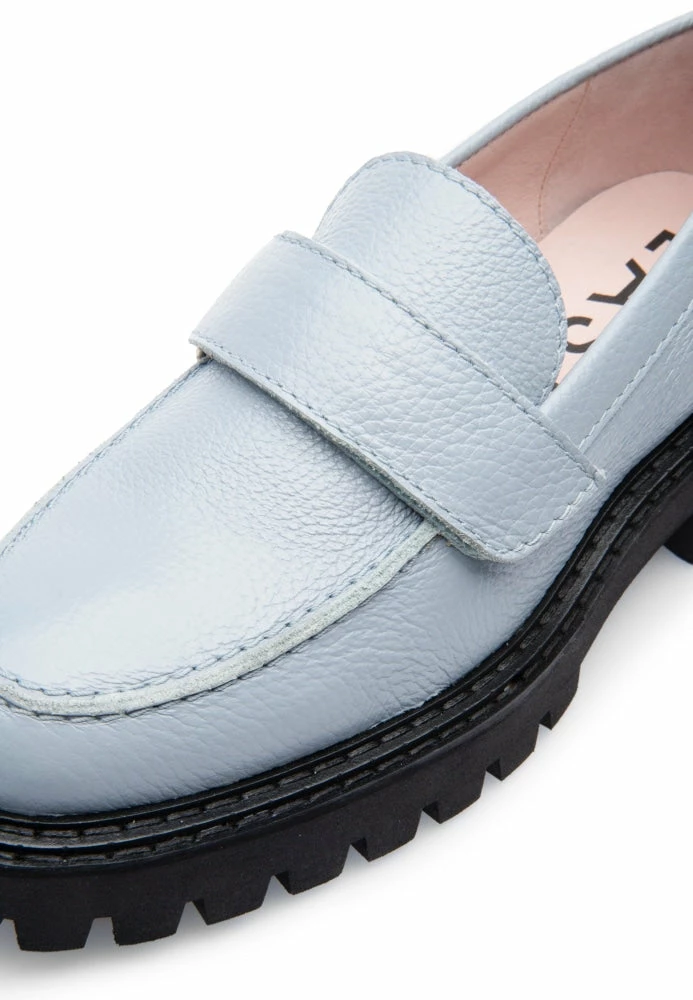 Formal or casual, ‘Lady’ leather loafers from ‘LÄST’ are a perfect match for every occasion. These elegantly fashionable ‘Dusty Blue’ loafers are made with 100% textured leather with 100% leather lining to reinforce durability and ruggedness.