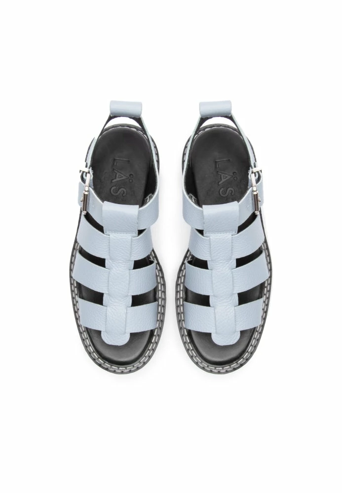 | Brand Model Product number Category Color Material Lining Fastening Made in | LÄST Daphny LAST1520 Sandals Dusty Blue 100% Grained Leather Leather Adjustable Pin-buckle Portugal |