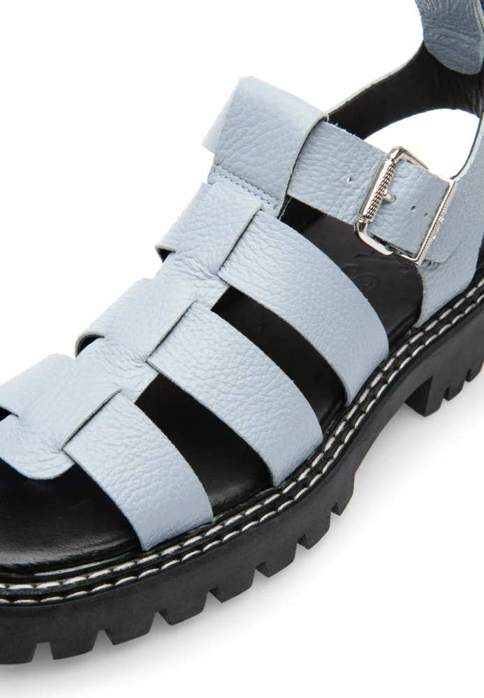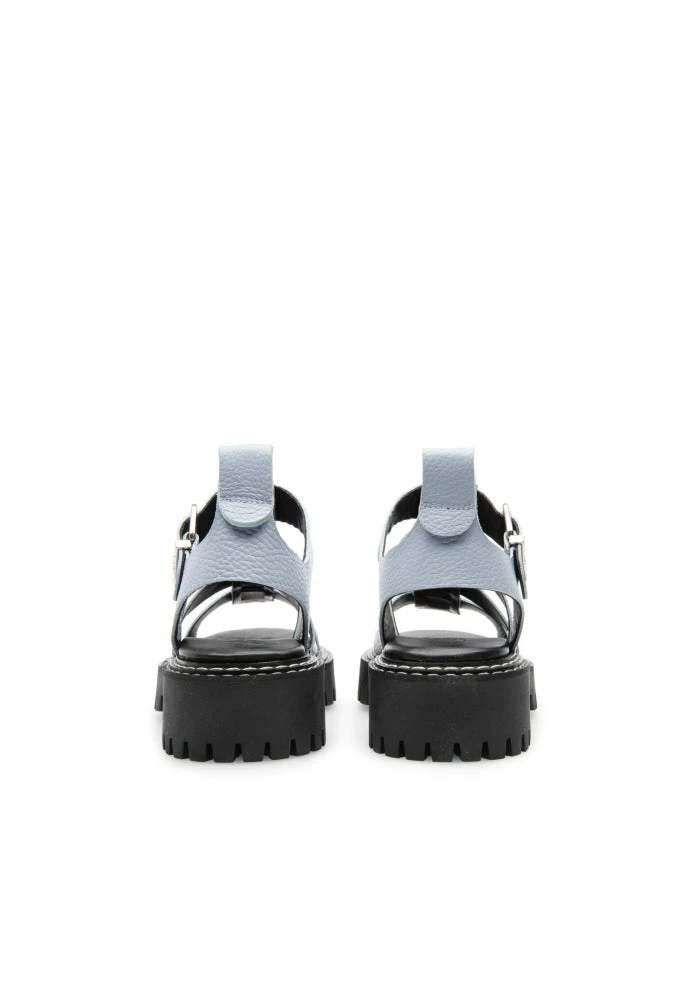 Get ready to look cool and comfortable in the style of ‘Daphny’ chunky sandals from ‘LÄST.’ These ever-so-stylish ‘Dusty Blue’ sandals are made in Portugal using super soft 100% grained leather and leather lining. These chic sandals feature a round toe, a super soft strappy upper, an adjustable pin-buckle fastening, and a chunky toothed platform.