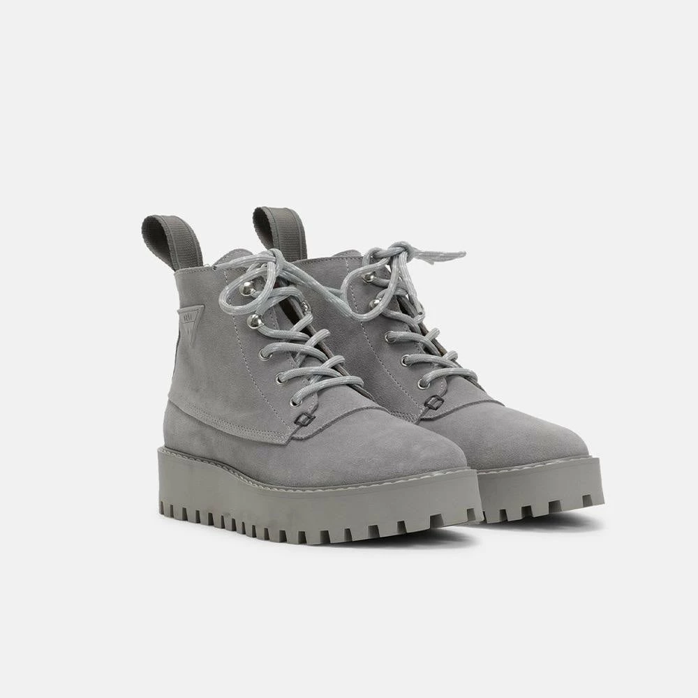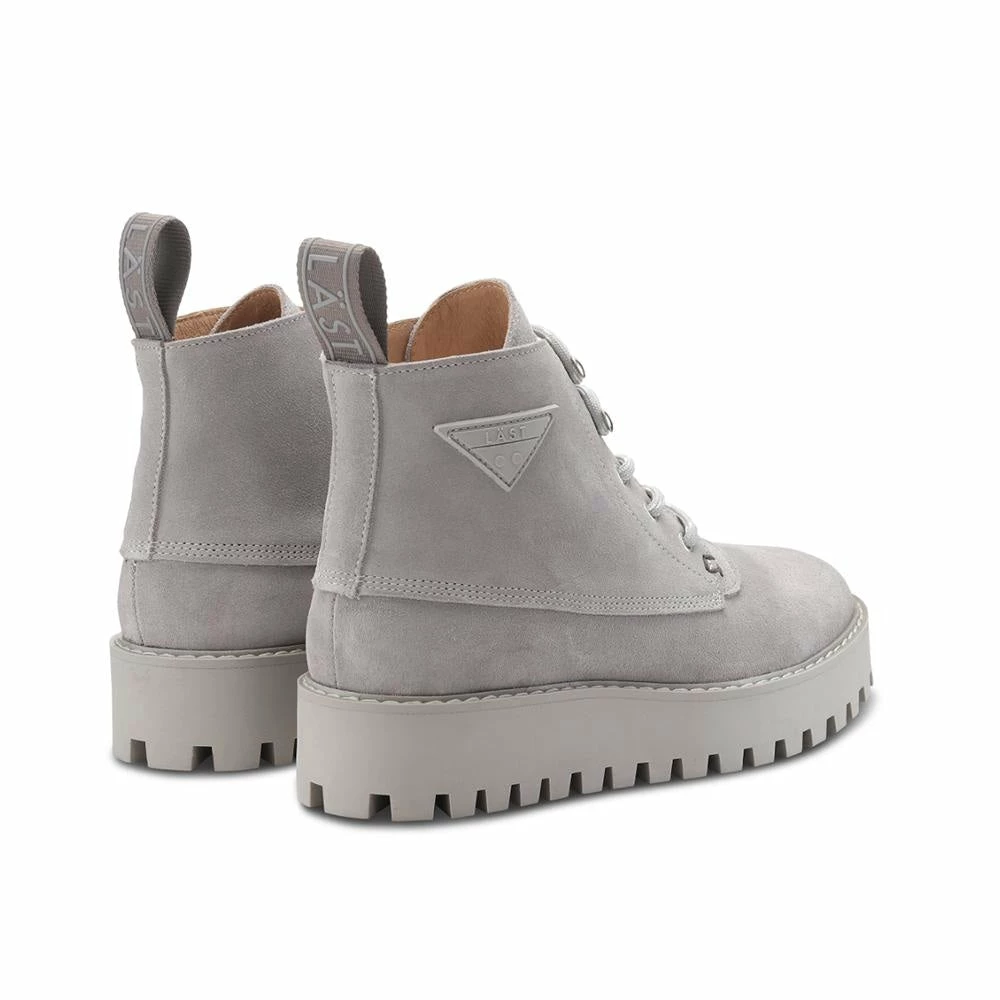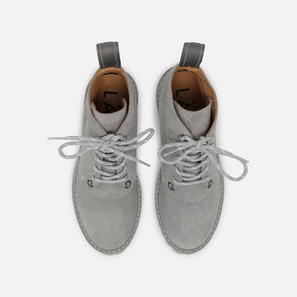 8-eye ‘ROCKY’ boots for women from LÄST deserve all your attention with their luxurious and trendy style and unmatched comfort. These combat boots in grey color are designed in 100% authentic Italian nubuck leather with genuine leather lining. These fashionable ankle boots come with a platform heel, a slip-resistant rubber sole, and a shoestring fastening.