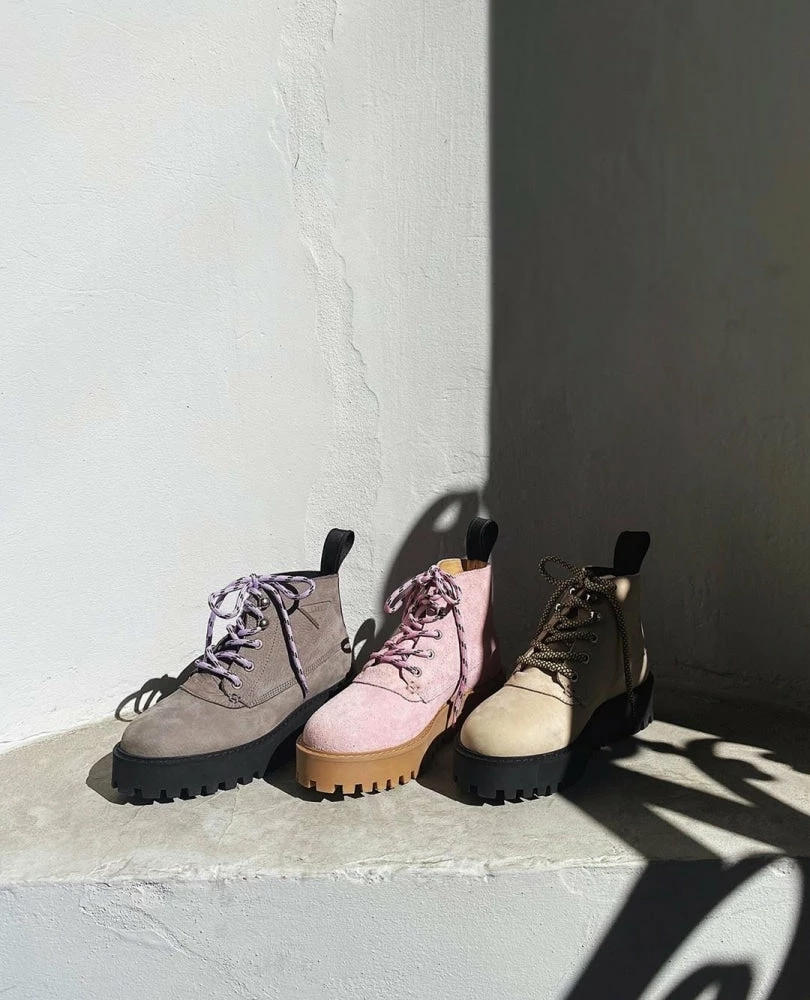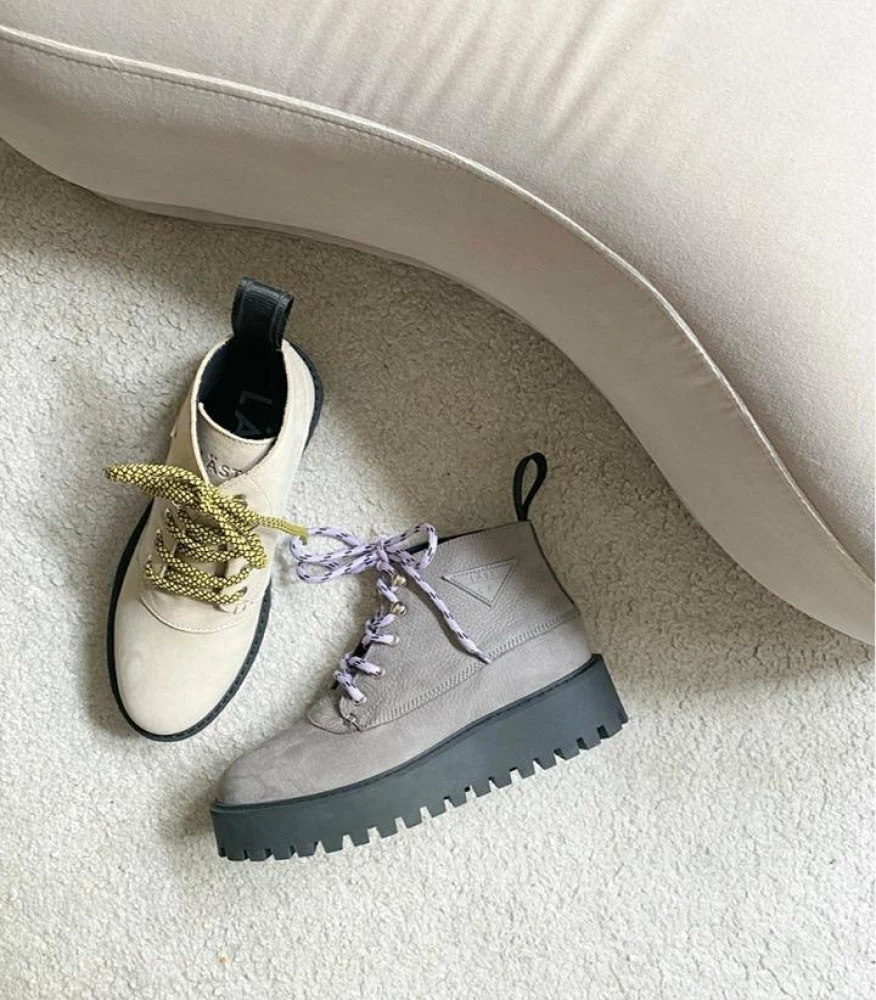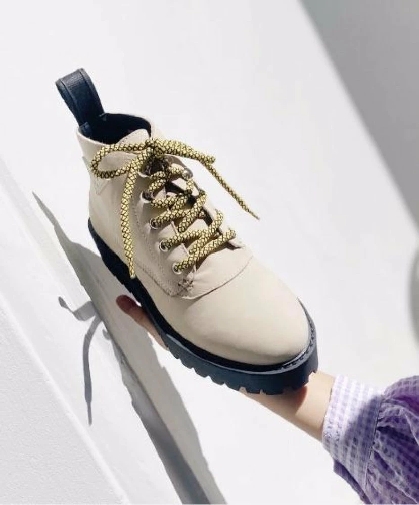 Rocky White by LÄST. An icon 8-eye combat boot reimaged. This updated sole platform work boot with colorful laces is the perfect stylish street flat platform ankle boots.