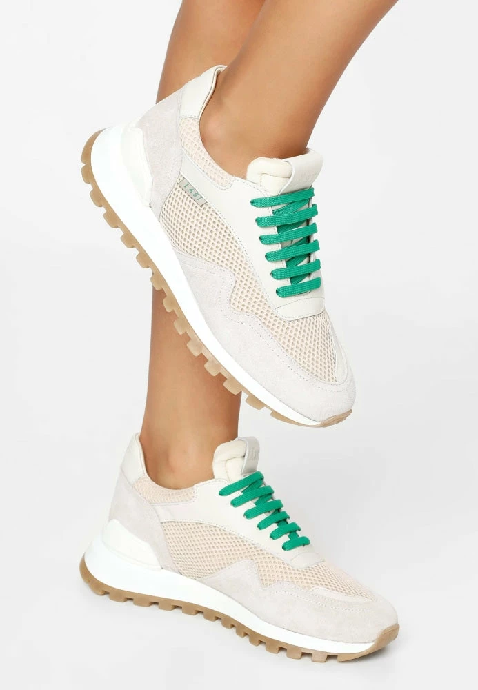 | Brand Model Product number Category Color Material Lining Closure Made in | LÄST Rosie LAST1570 Sneakers Beige Leather / Textile Leather / Textile Laces Portugal |