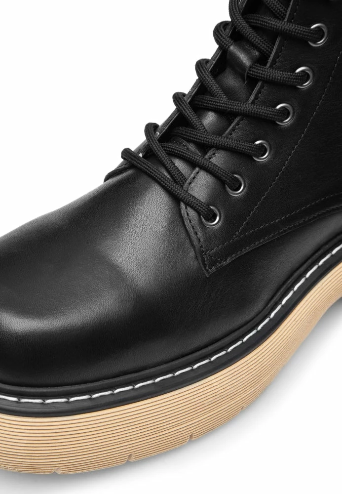 Get the confidence to become a role model for fashionistas all around wearing these ‘Jane’ combat boots from ‘LÄST.’ These clean ‘Black’ boots are made with 100% cow leather delivering great quality and durability.