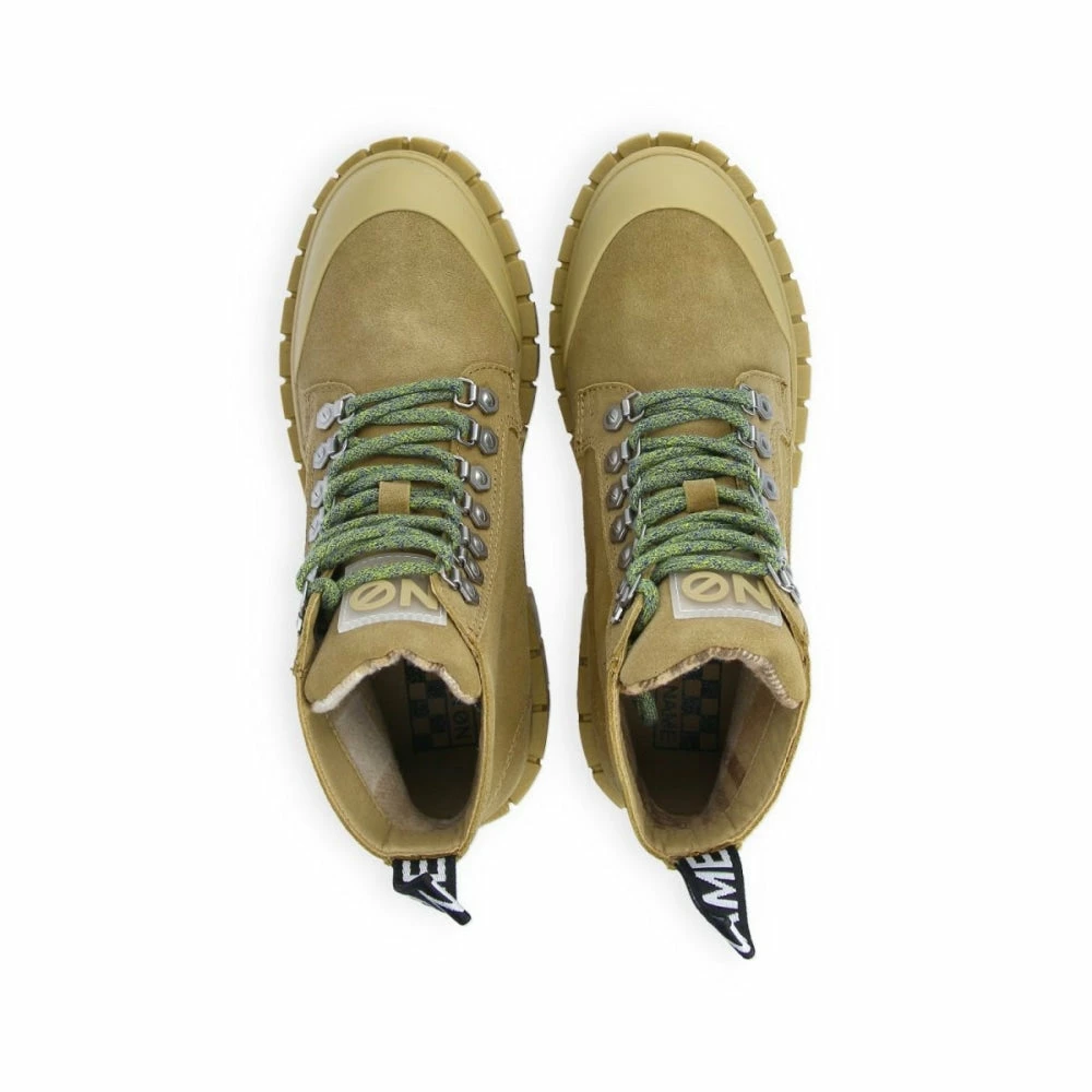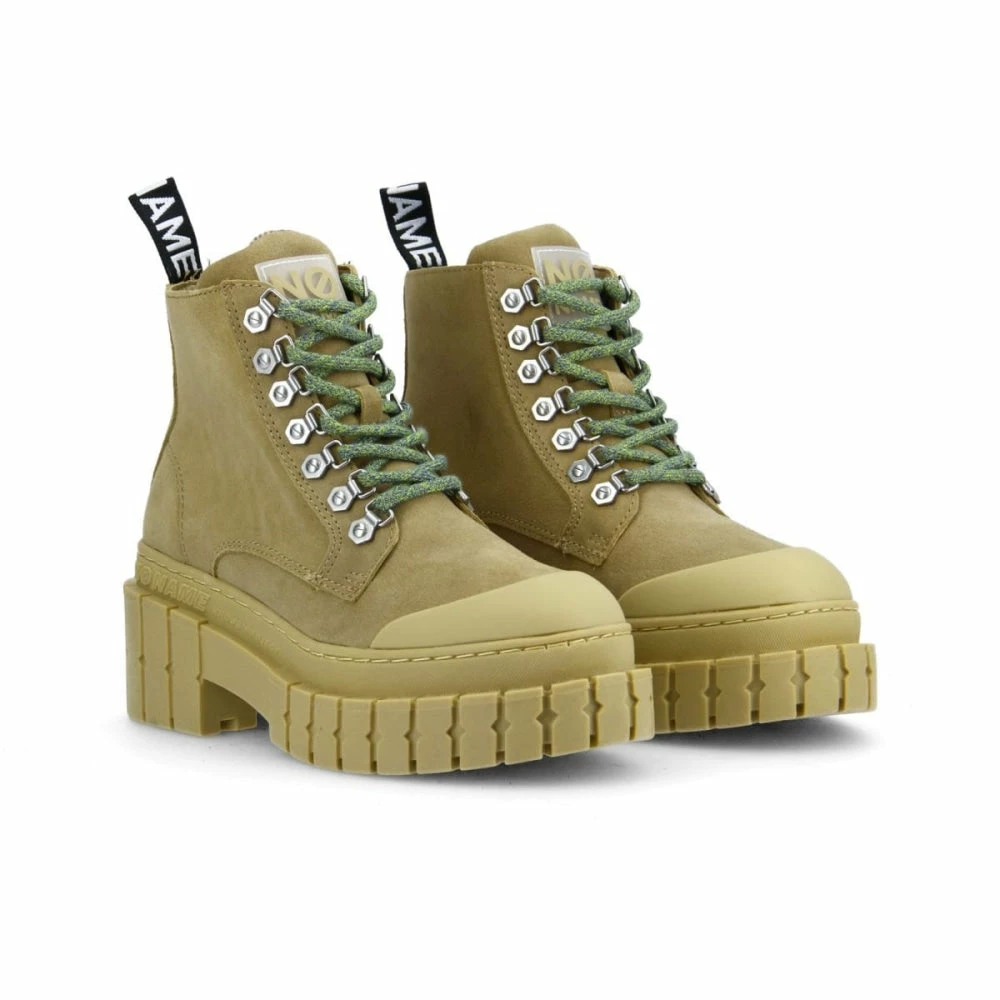 These voguish boots feature a suede upper with a rubber toe cap, lace-up fastening with eyelets, pull tabs at the back with the ‘No Name’ logo, and a 7.5 cm heel with a chunky platform. The hiker-style green laces are the attention seeker on these ‘Taupe’ boots. The microfiber insoles are removable and offer good breathability while wicking away the moisture.