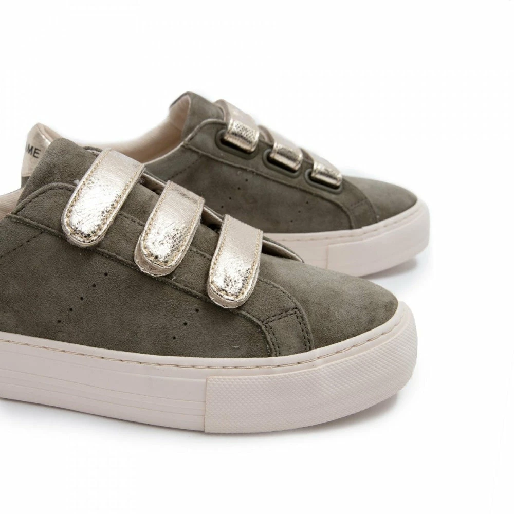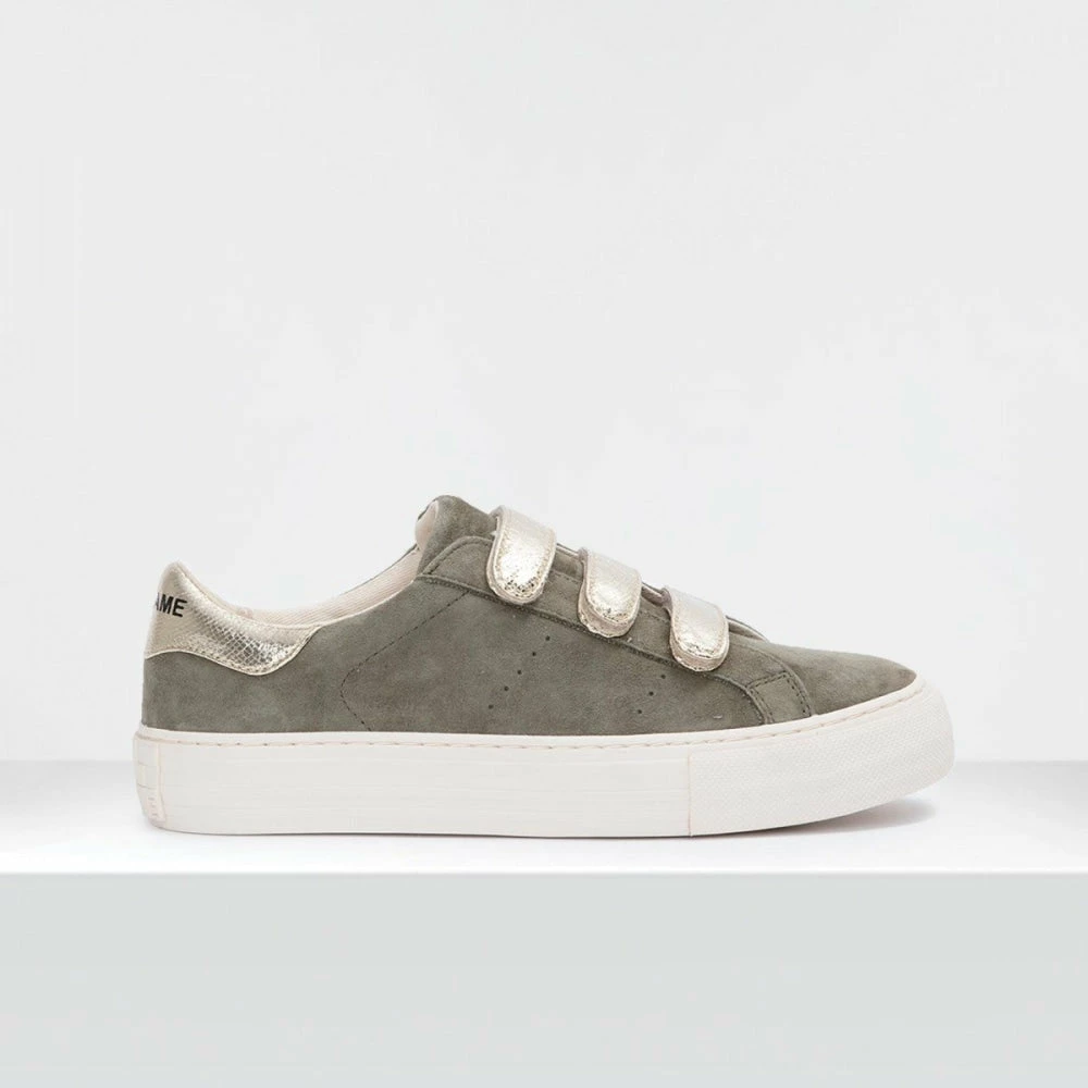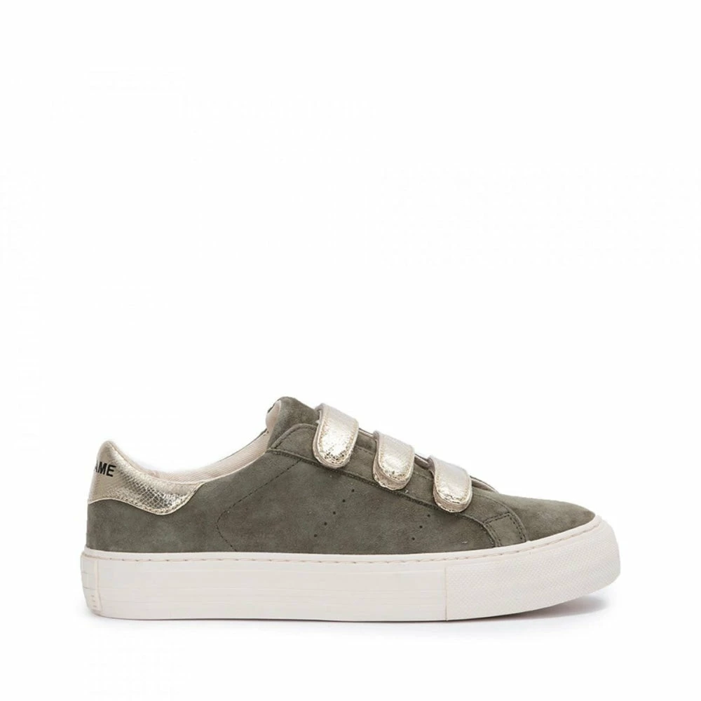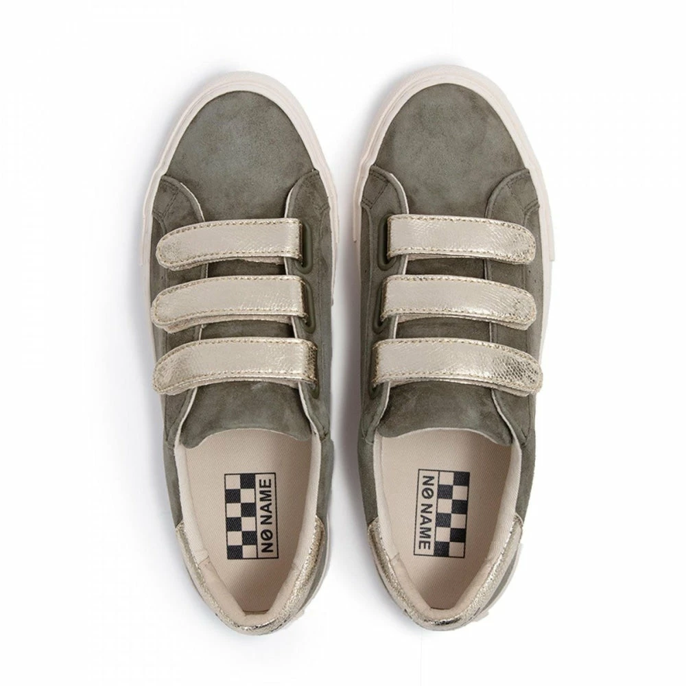 NO NAME’s flat ARCADE STRAPS sneaker is going for an outdoor vibe with this khaki suede and metallic 3-strap version. A breath of fresh air to enjoy every day.