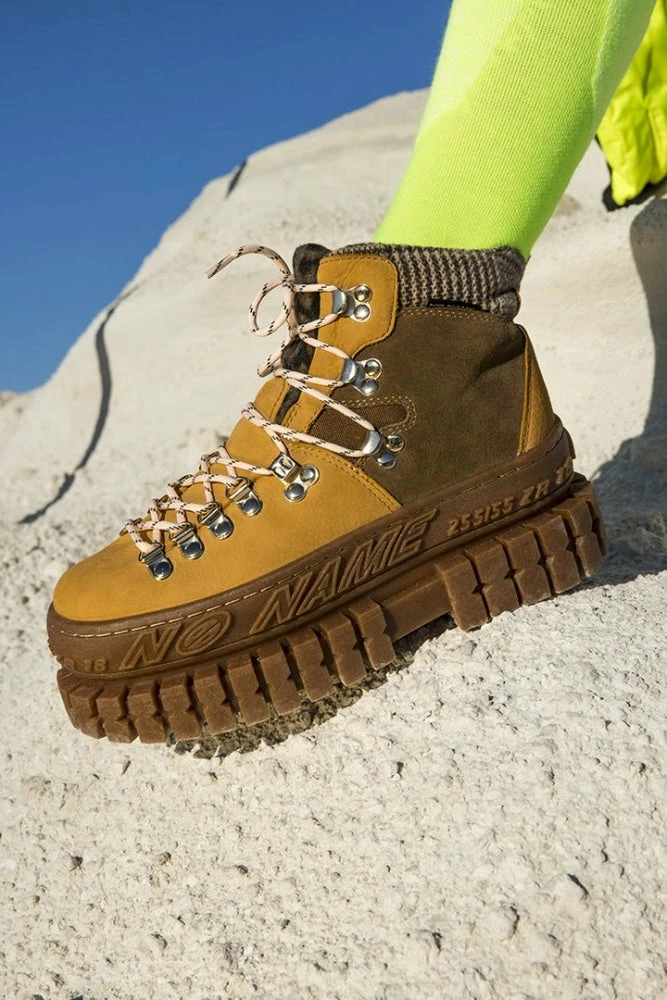 The 3D ‘NO NAME’ logo on the side of the thick notched sole looks uniquely attractive. The outsole further adds to durability with a side topstitching. Match these fashionably sporty boots with high-waisted jeans and a crop top, or combat pants with a bralette under a jacket, and get ready to slay a sporty as well as a casual look.