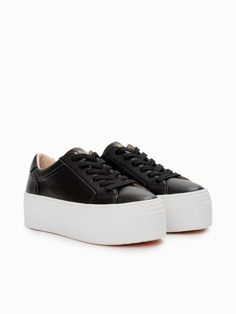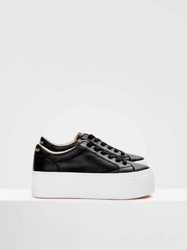 Spice Sneaker – Lambskin – Black Fox White, platform sneakers for women with casual attitude. They close with laces.