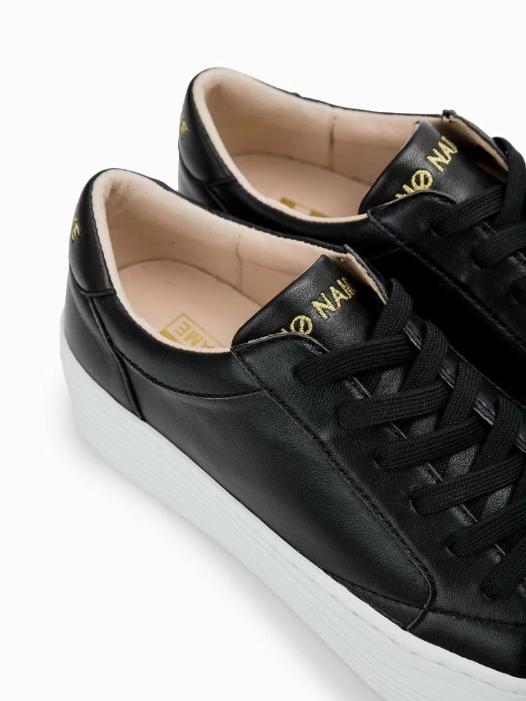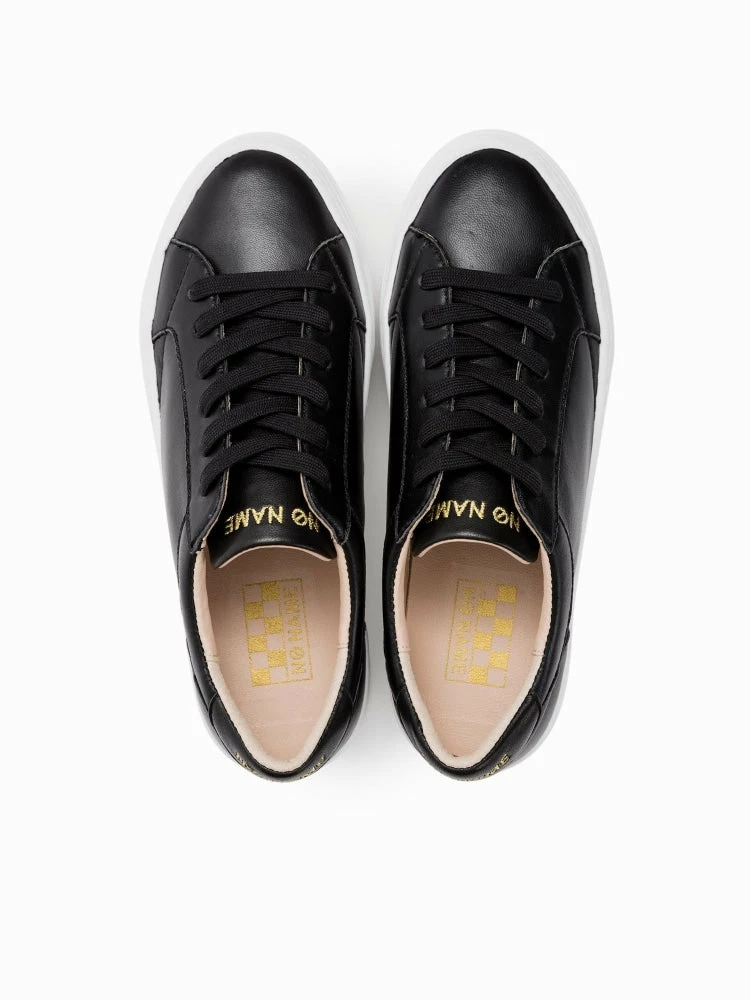 | Brand Model Product number Category Color Material Lining Upper Heel height Outsole Fastener | NO NAME Spice Sneaker HNTAZJ04B3 Sneakers Black Lambskin Goat leather Leather 5 cm Rubber Laces |