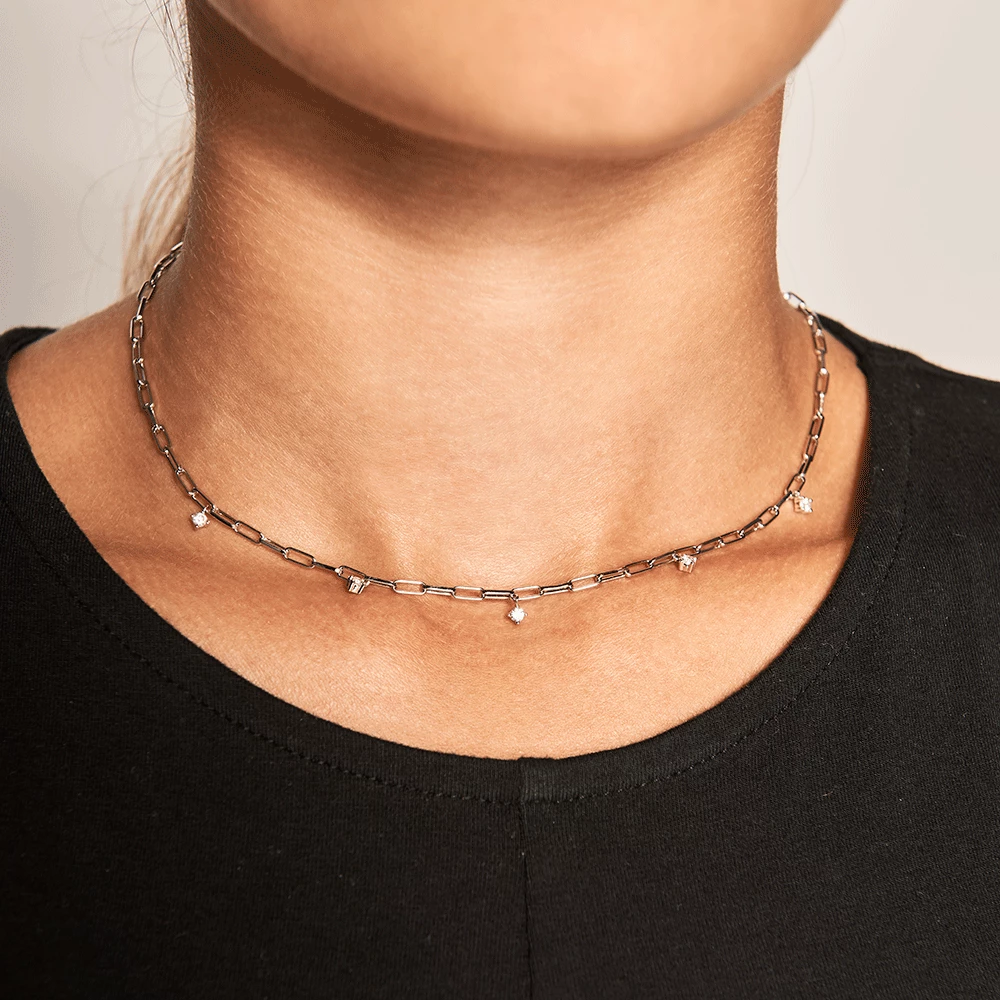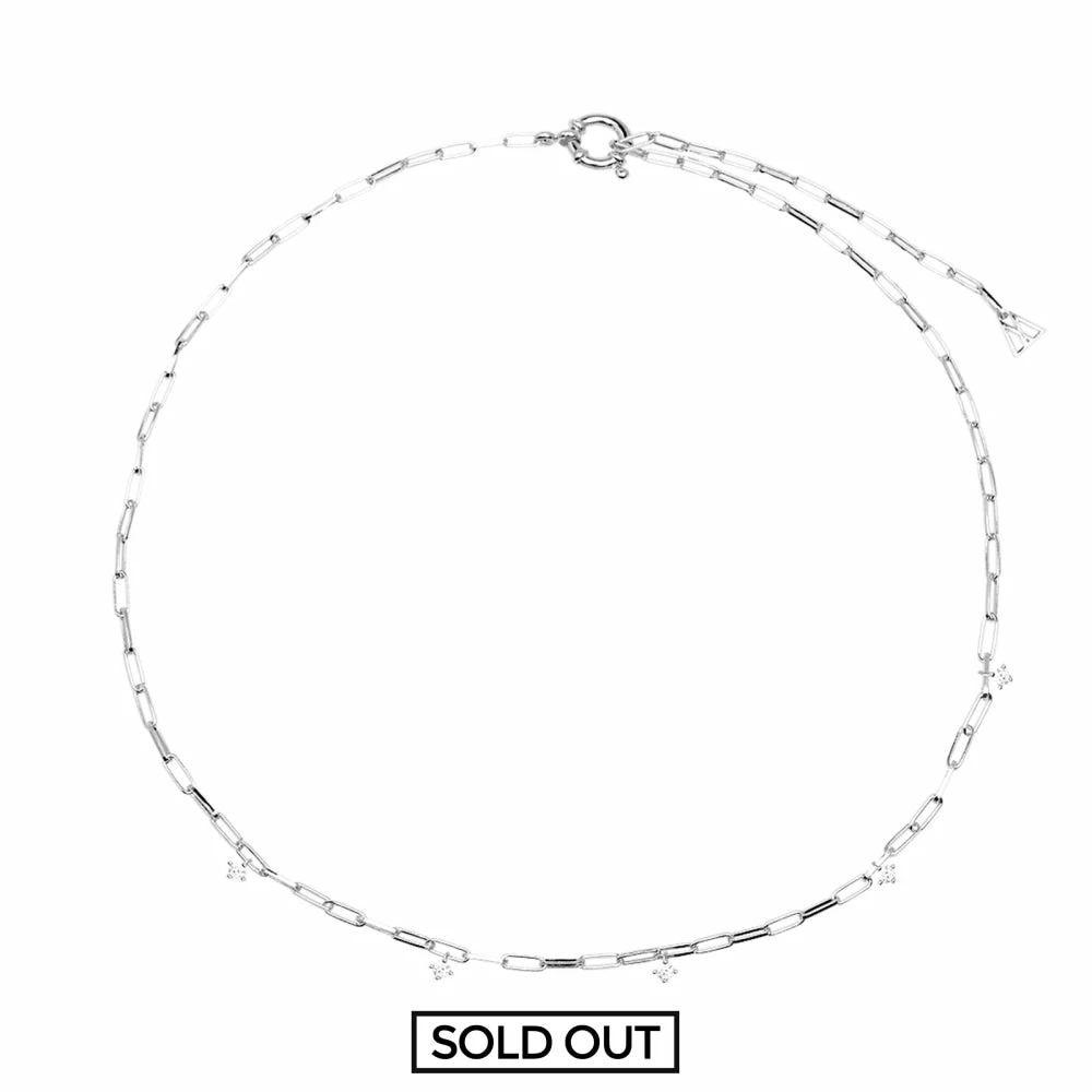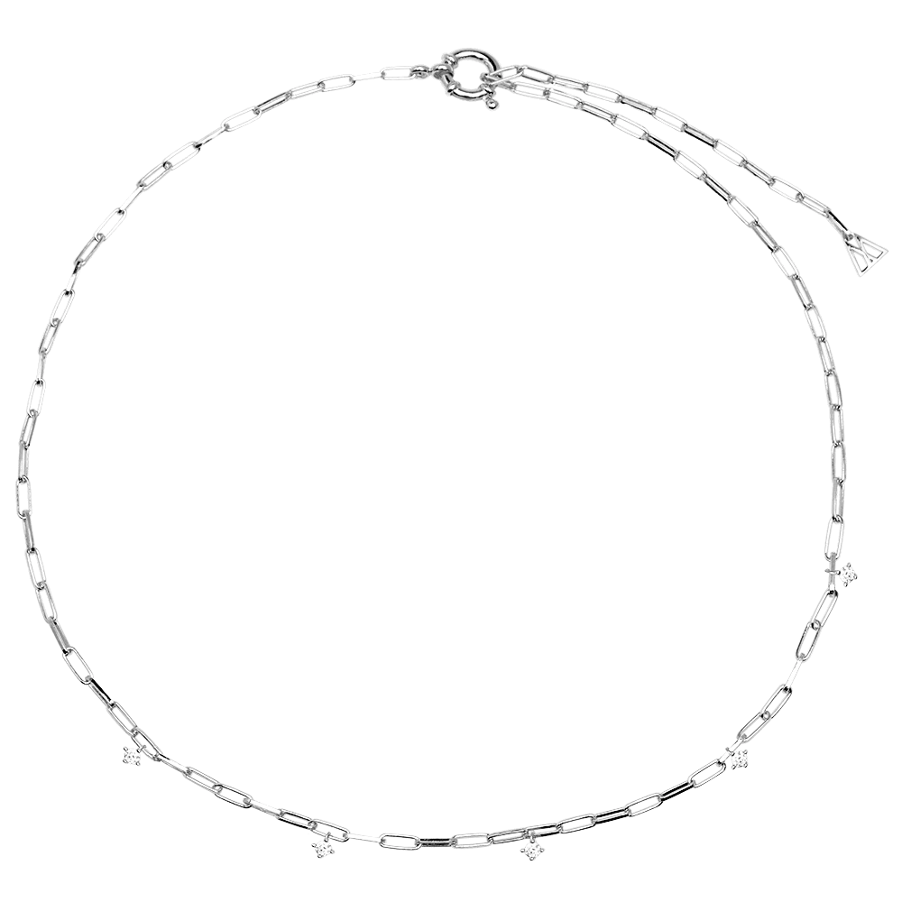 Embracing sophistication in a wild and mysterious environment, Gina Silver necklace is an alliance of delicacy and character in a cosmic and bright design. A merge of eternal sparkles and firm chains of freedom: zirconia carefully hand-set in a 925 sterling silver base. A design filled with contemporary minimalism in a collection that represents the eternal duality of today’s women: free, dreamer and fighter.