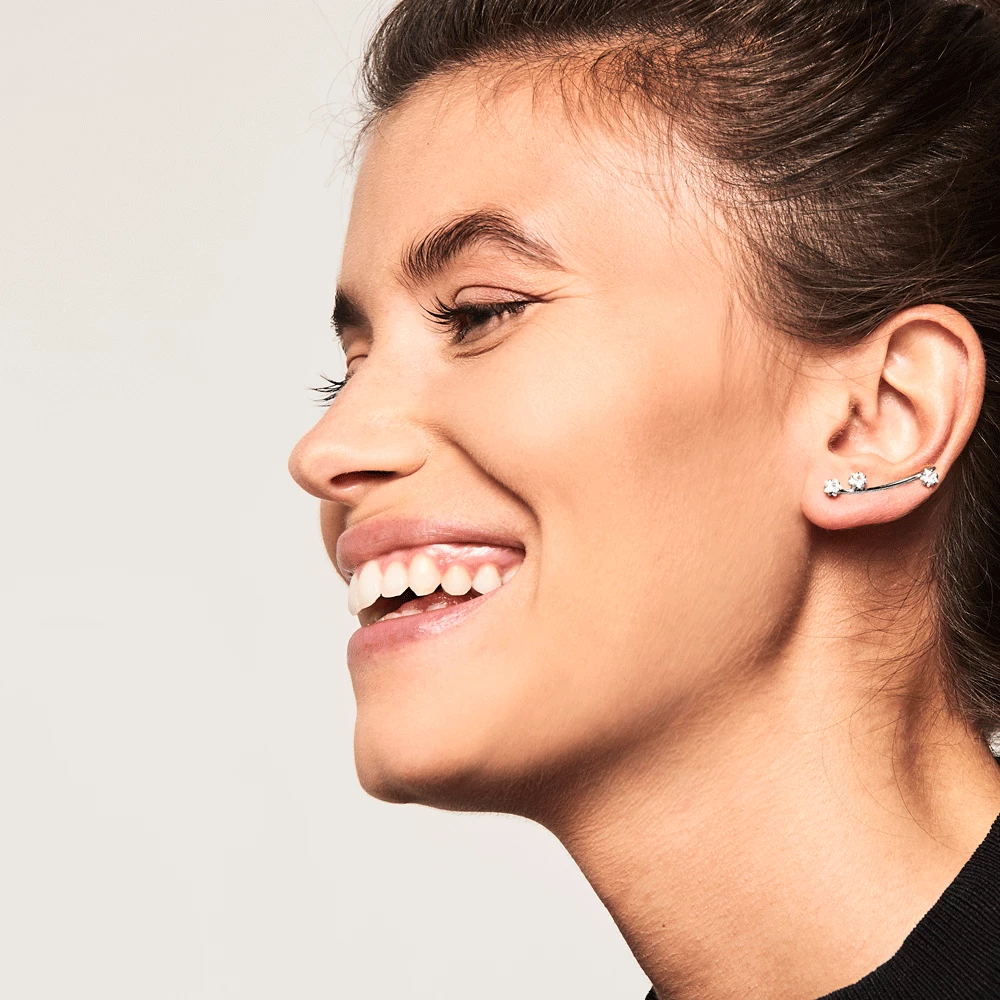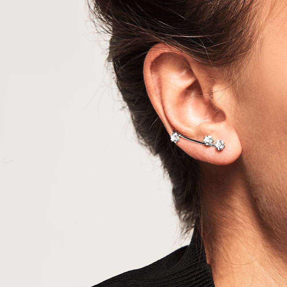 White star shaped zirconia never looked so good. These 925 sterling silver stud earrings curve up ear lobes, making your ears shine on its own. These feminine dazzling earrings are a must have for those who do not fear modernity and timeless elegance.