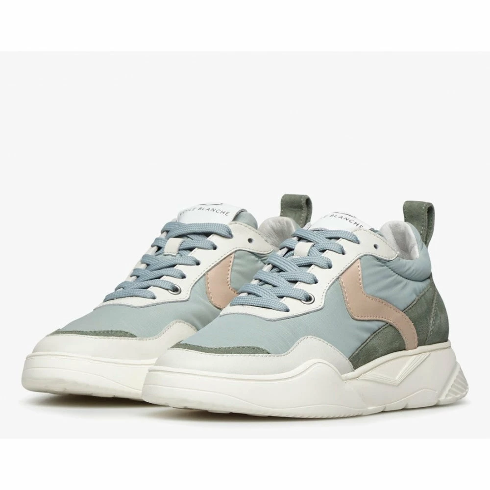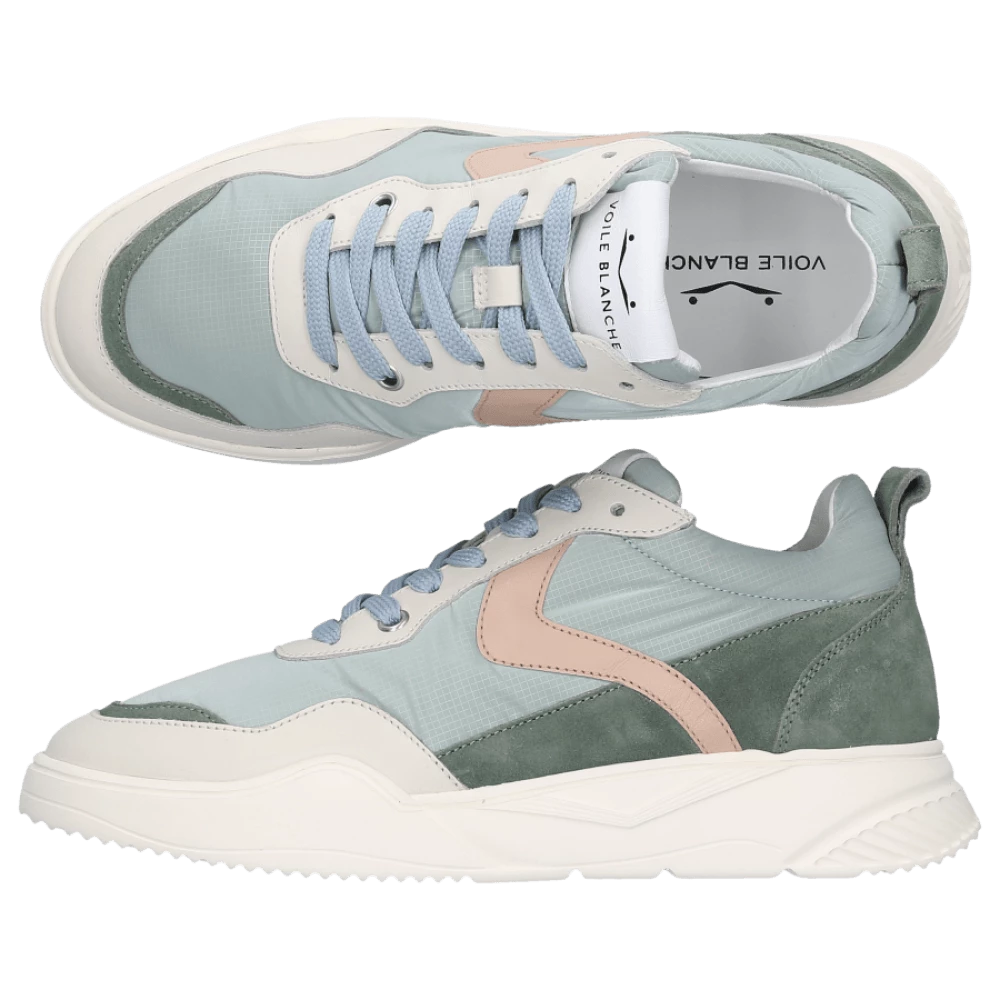 | Brand Model Product number Category Color Material Lining Outsole Made in | VOILE BLANCHE Joshee 2016684011N41 Sneakers Sage Gree / Ice White Leather and Textile Leather Rubber sole Italy |