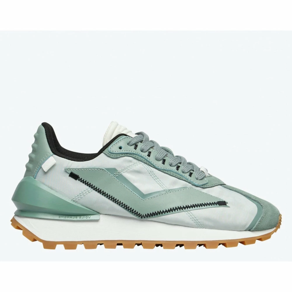 | Brand Model Product number Category Color Material Lining Outsole Made in | VOILE BLANCHE Qwark Spur Woman 2016619010F05 Sneakers Sage Green Technical fabric upper Leather Ultra-light rubber sole Italy |
