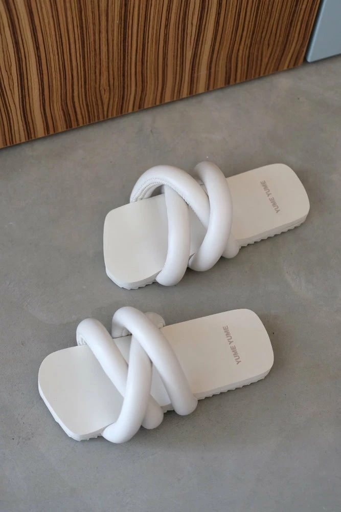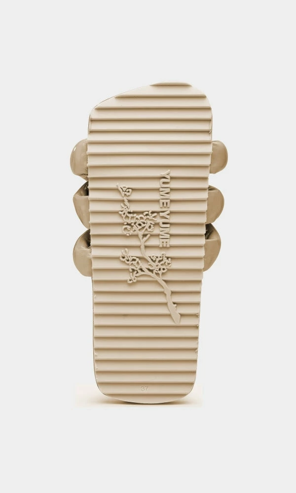 Unique, stylish, and attractive are the three other names for ‘Yume Yume’ ‘Tyre’ slides in ‘Beige’ shade. These voguish slide sandals feature the iconic square shape of Yume Yume with a bicycle-like tyre upper, and a super comfy footbed with a sleek platform. They are made with eco-friendly vegan leather to surprise the sustainable fashion lover in you.